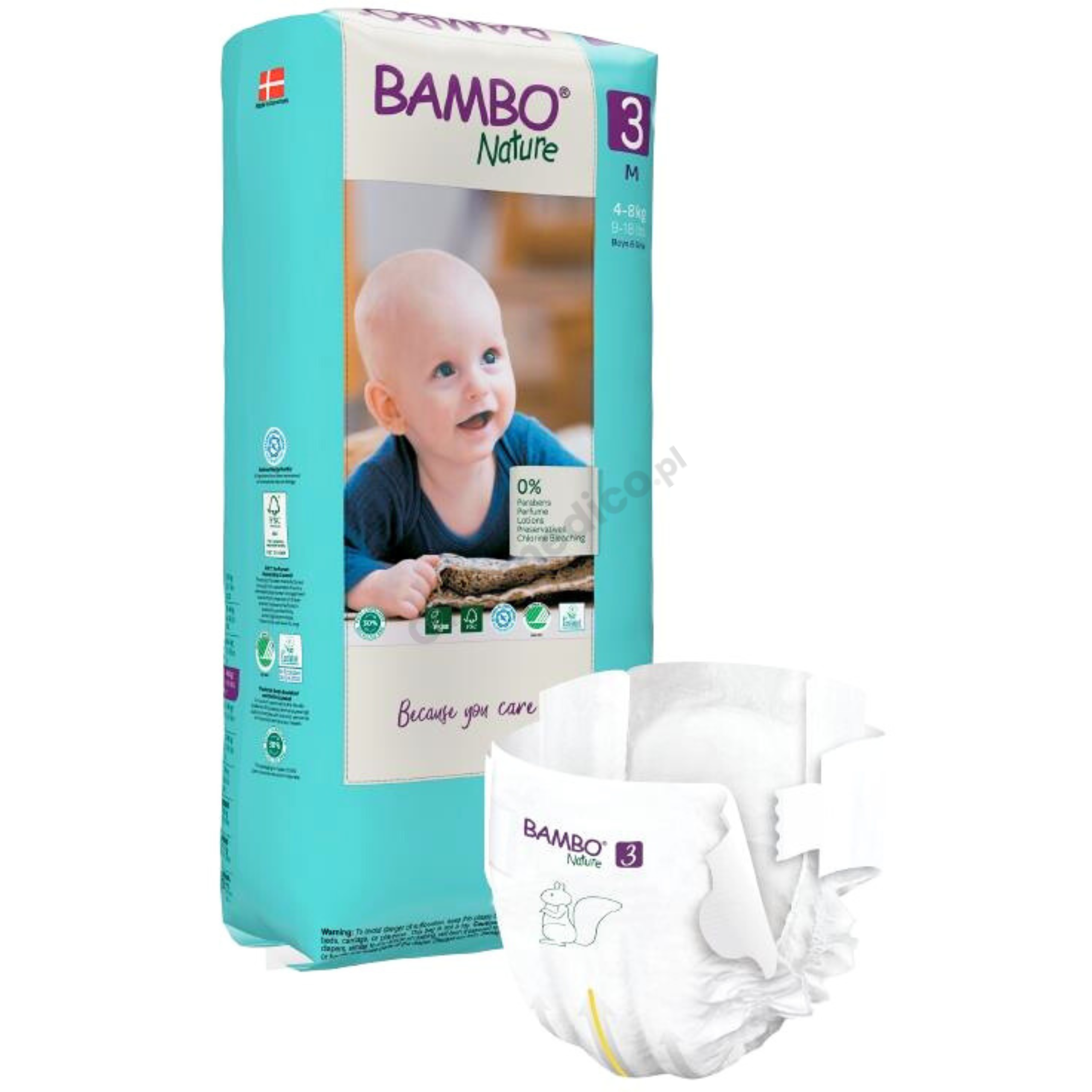 Abena Bambo Nature 3 pieluszki pampersy 4-8 kg dla dzieci na rzepy AZS