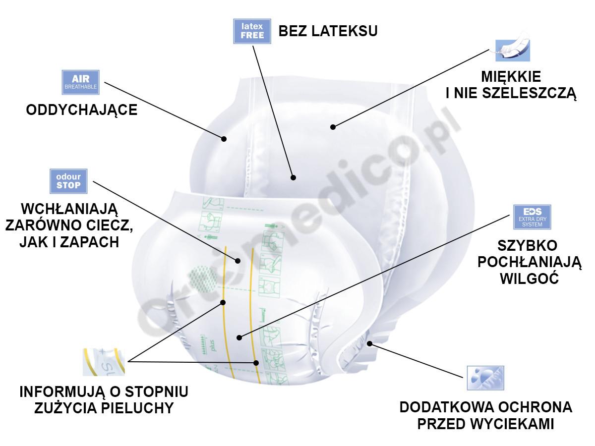Pieluchy anatomiczne Seni San Plus przeznaczone są dla osób z ciężkimi bardzo ciężkim stopniem nietrzymania moczu. Przeznaczone zarówno dla osób aktywnych jak i dla tych o ograniczonej mobilności. Chłonność jaką posiadają te pieluchy to 8/9 kropelek, dzięki czemu idealnie nadają się również na noc.