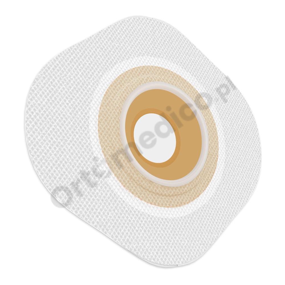 - Płytka wykonana jest z materiału durahesive, przy kontakcie z wilgotną wydzieliną puchnie tworząc ochronny kołnierz, idealnie przylegający do stomii.
