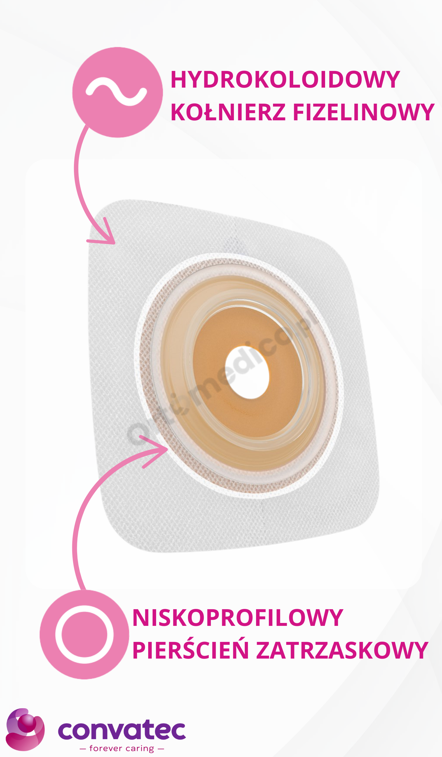 Duży wybór – płytki dostępne są z wypukłym przylepcem Convex – dla zaopatrywania stomii płaskich oraz dla stomii wyłonionych.