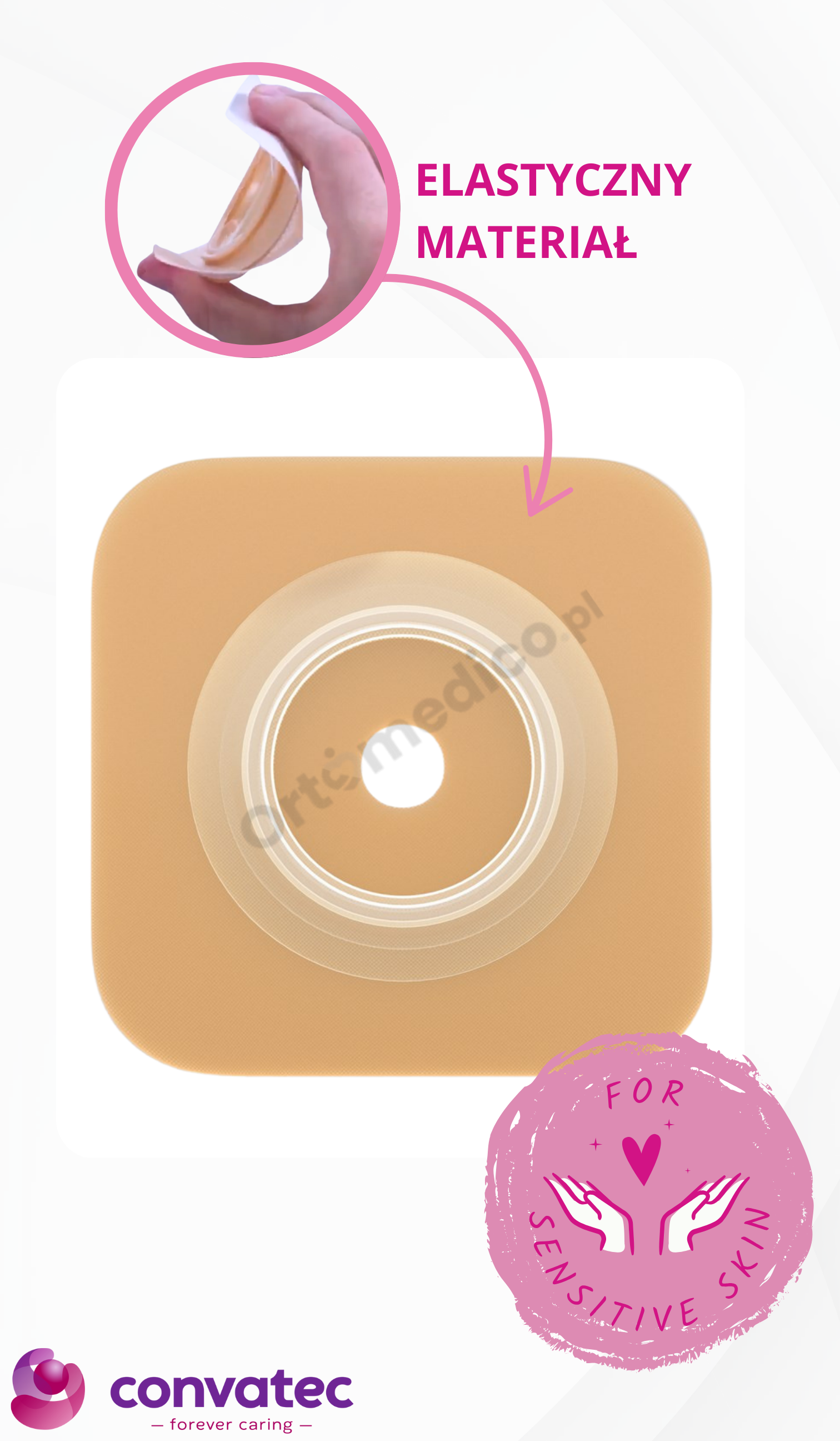 Specjalnie zaprojektowany pierścień o obniżonym profilu umożliwia dyskretne i wygodne połączenie z workiem stomijnym. Elastyczna konstrukcja pierścienia dopasowuje się do kształtu ciała, zapewniając komfort noszenia przez cały dzień.