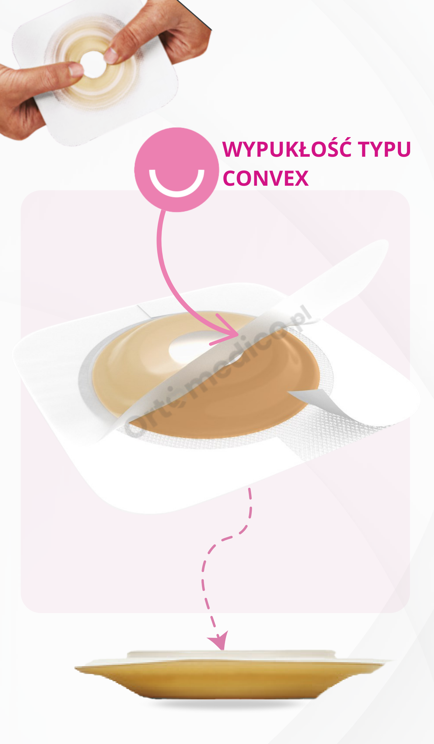 Duży wybór – płytki dostępne są z wypukłym przylepcem Convex – dla zaopatrywania stomii płaskich oraz dla stomii wyłonionych.