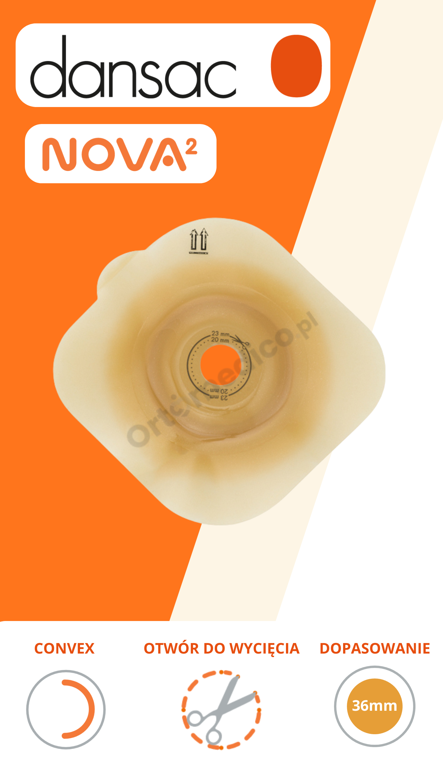 - Stosowanie systemu dwuczęściowego Dansac Nova™ 2 lub NovaLife™ 2 o średnicy pierścienia 36 mm