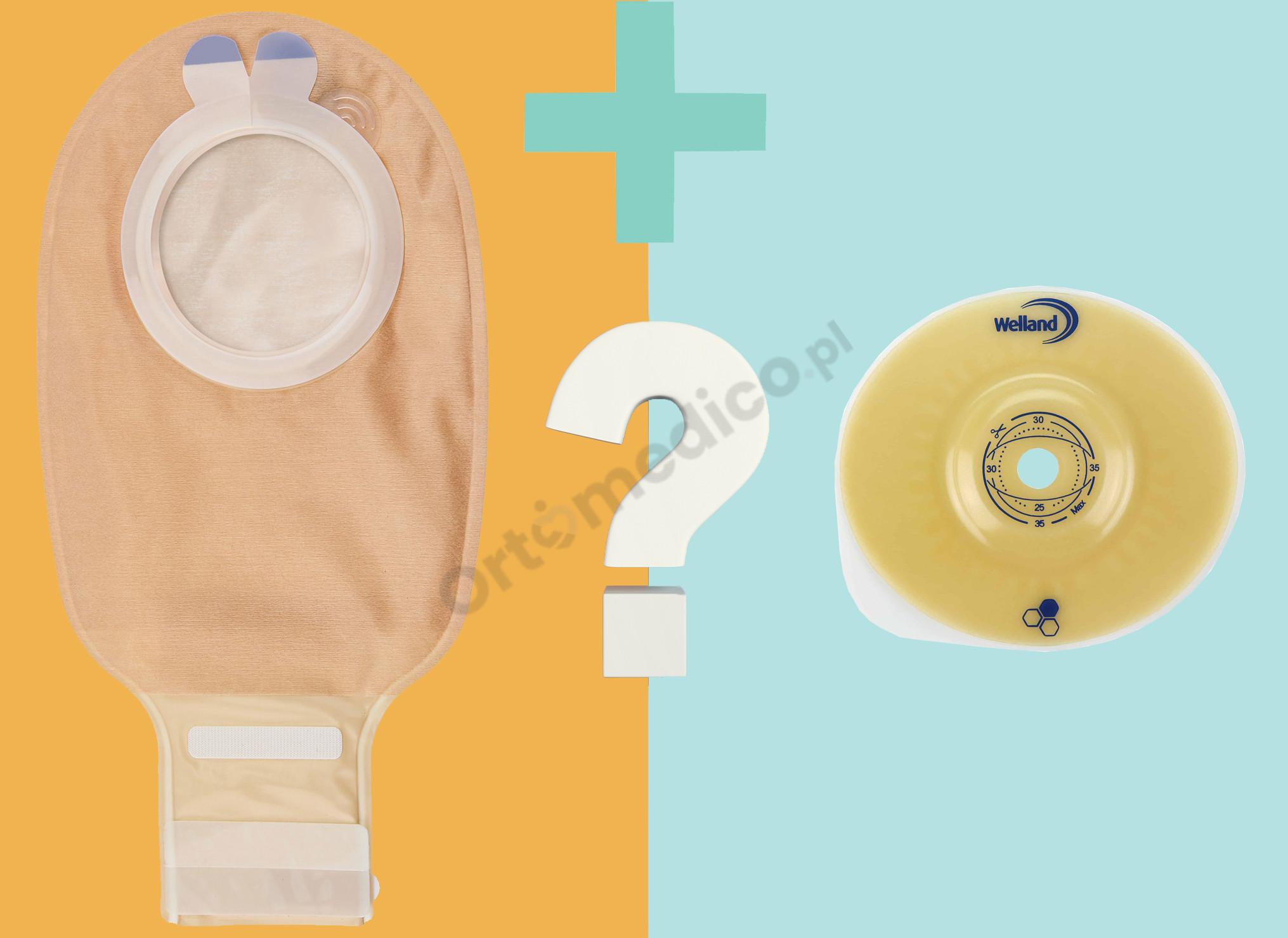 a) Płytki stomijnej – przyklejanej do skóry, zapewniającej trwałość i komfort.