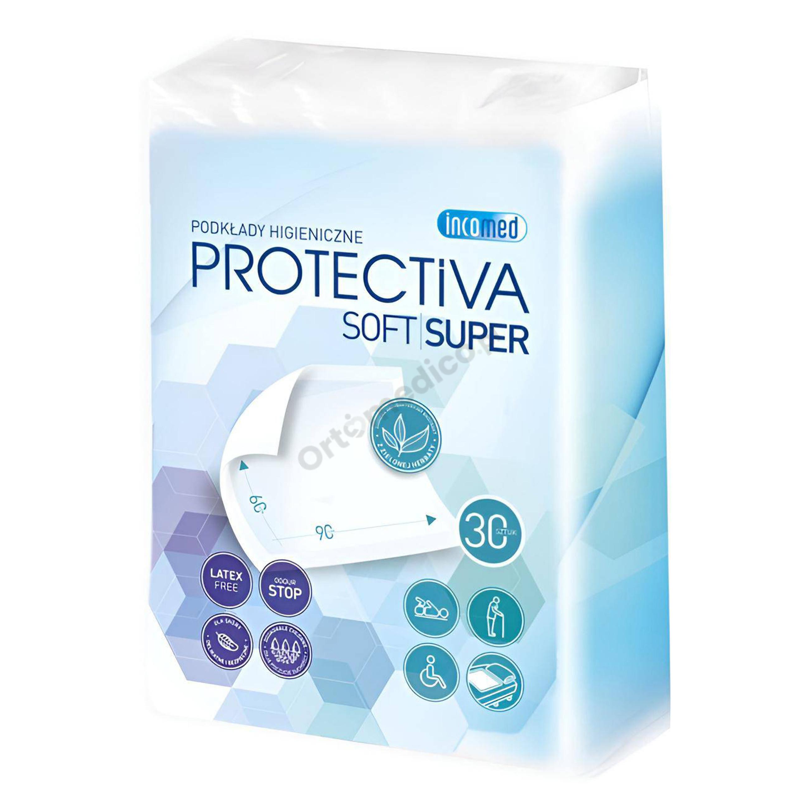 Jednorazowe podkłady higieniczne chłonne Protectiva Soft Super stosowane przy pielęgnacji osób starszych, dzieci i niemowląt lub osób chorych, z problemami nietrzymania moczu lub borykających się z problemem odleżyn.