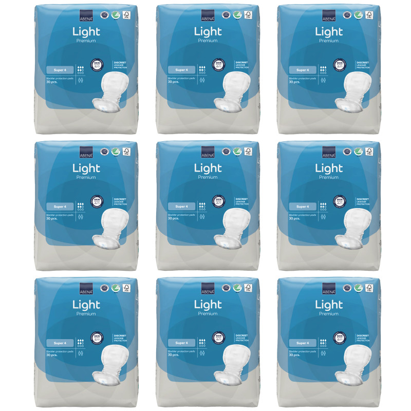 | Abena Light Super 4 podpaski urologiczne dla kobiet | 850 ml | 44 x 20 | Oddychające, bardzo cienkie, system TopDry, kontrola zapachów, miękkie barierki boczne |
