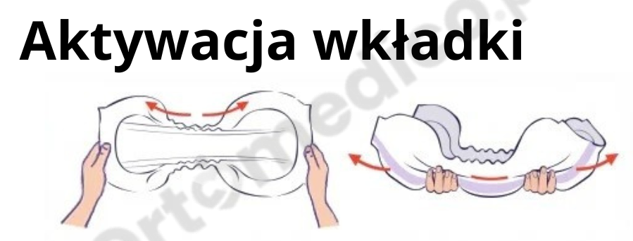 Przed założeniem, aktywuj wkładkę, delikatnie rozciągając ją na długość i szerokość. Dzięki temu materiał stanie się bardziej miękki i lepiej dopasowany do ciała.