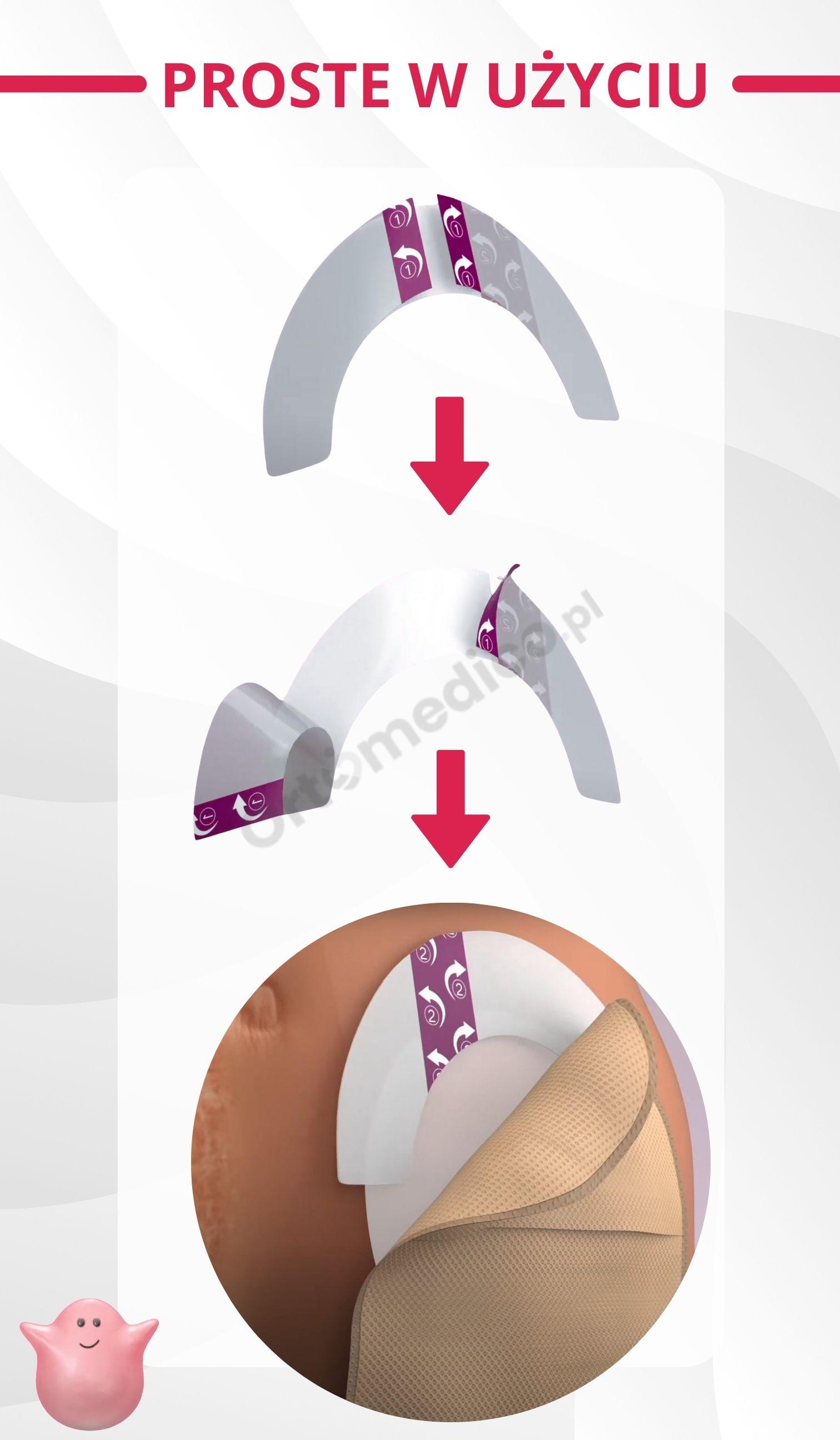 • Natychmiastowa przyczepność i trwałość – półpierścień jest wyposażony w miękki, silikonowy klej, który gwarantuje skuteczne przyleganie przez długi czas, nawet w wymagających warunkach.