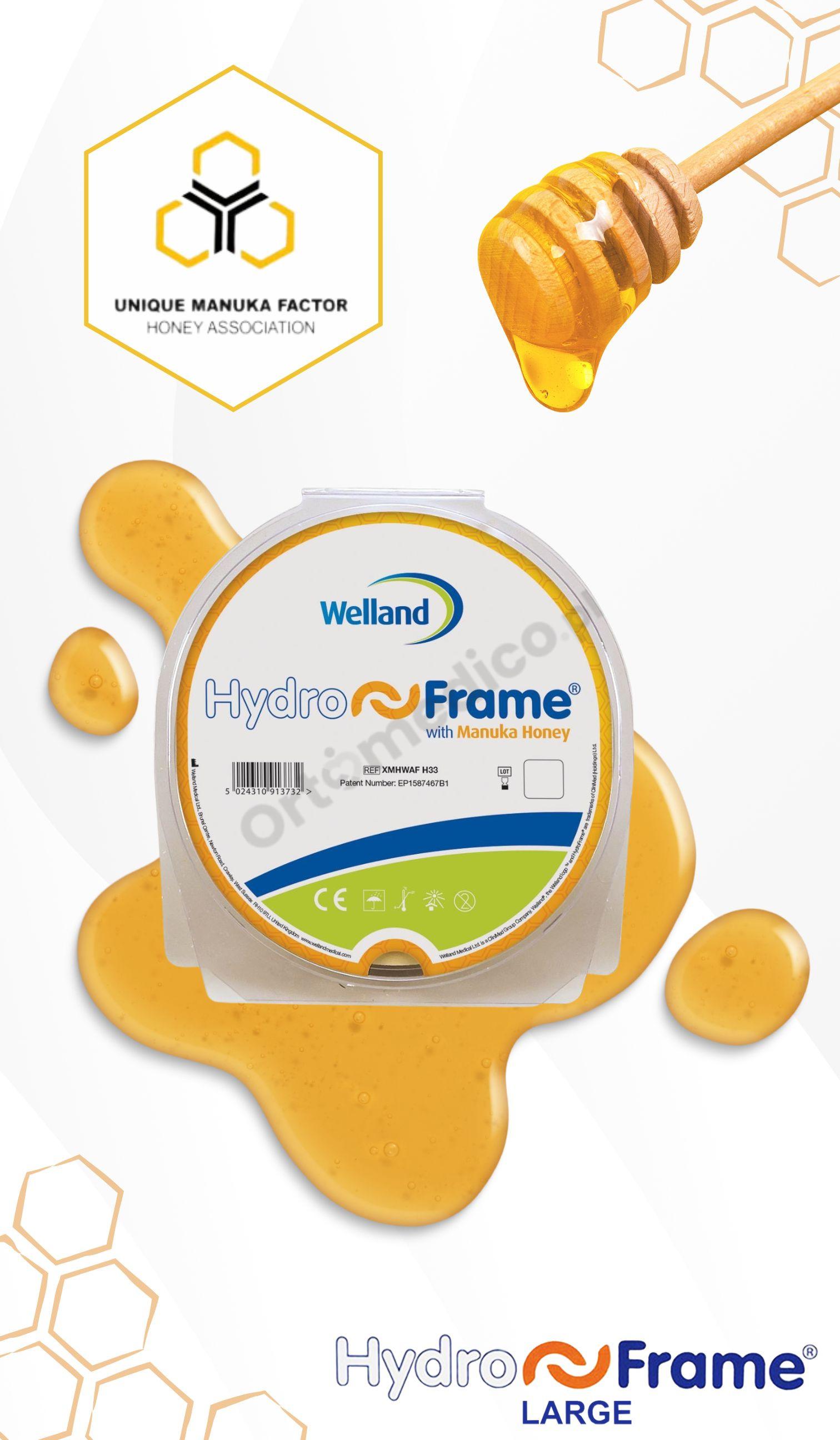 XMHWAFH33 HydroFrame Large Półpierścień Półkołnierz Uszczelniająco-Gojący Hydrokoloidowy Z Miodem Manuka Welland