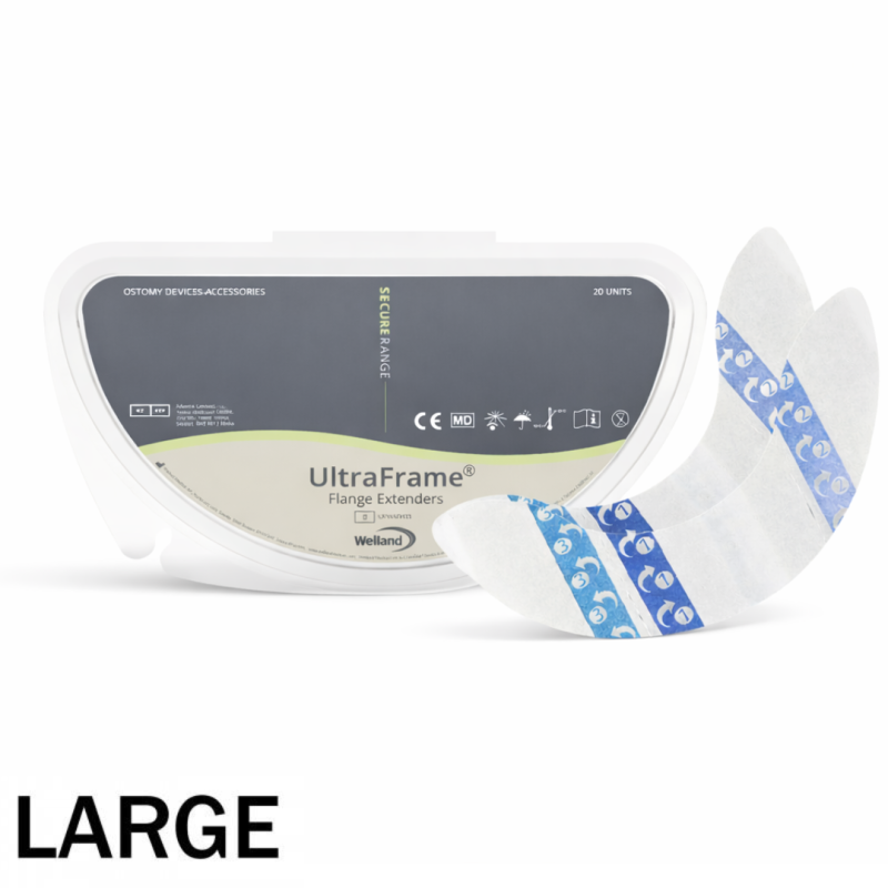 Welland Półpierścień UltraFrame Large to innowacyjny przedłużacz kołnierza, który został zaprojektowany, aby skutecznie zapobiegać przeciekom i zapewnić dodatkowe zabezpieczenie w codziennym użytkowaniu stomii. Dzięki natychmiastowemu, skutecznemu przyleganiu, UltraFrame gwarantuje wyjątkowo bezpieczne uszczelnienie, dając osobom ze stomią pewność, niezależnie od okoliczności – także tym z przepuklinami lub nieregularnościami anatomicznymi.