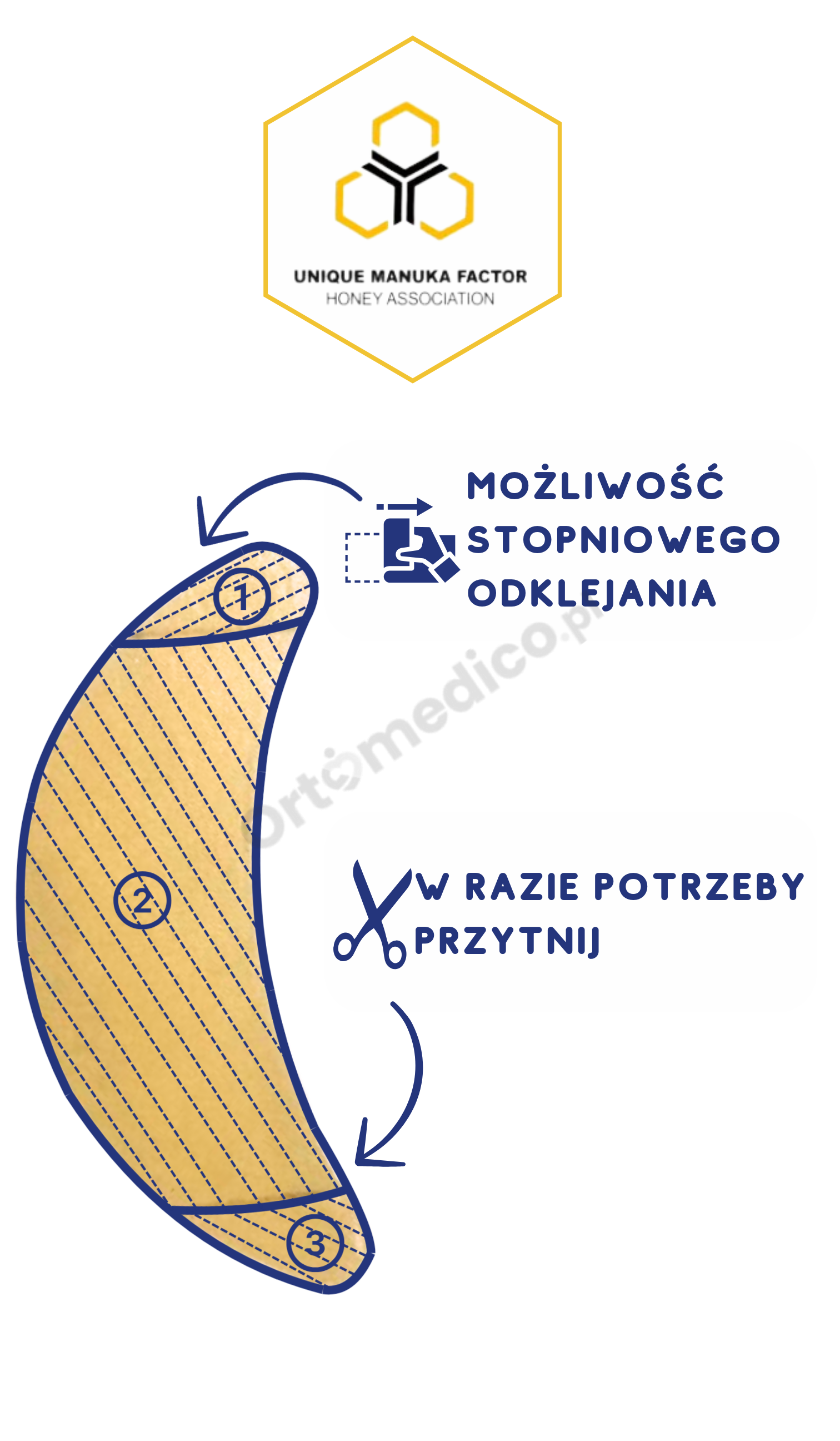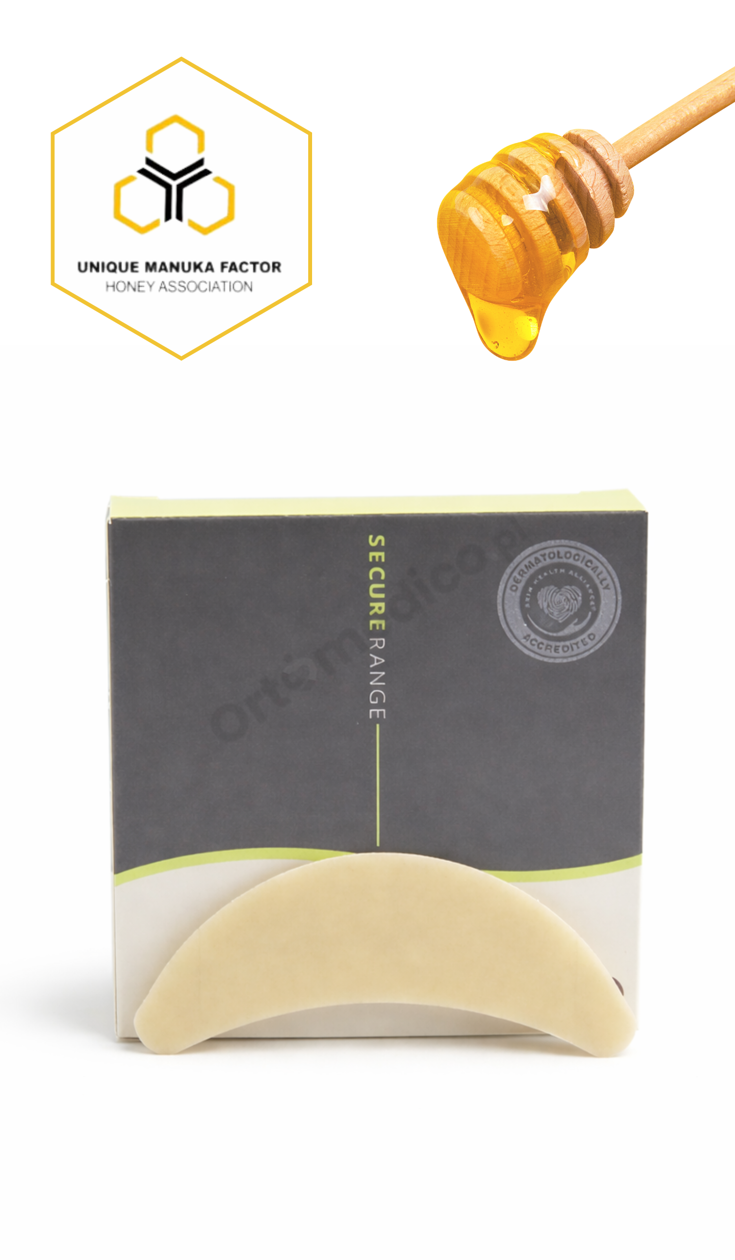 • Hydrokoloidowy półpierścień z dodatkiem miodu Manuka to idealne rozwiązanie dla osób o delikatnej i wrażliwej skórze.