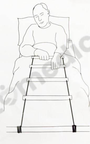 Użytkownik może podciągnąć się rękoma chwytając szczebelków na przemiennie. Ustalenie odległości drabinki jest kwestią indywidualną, która jest zależna od stanu zdrowia.
