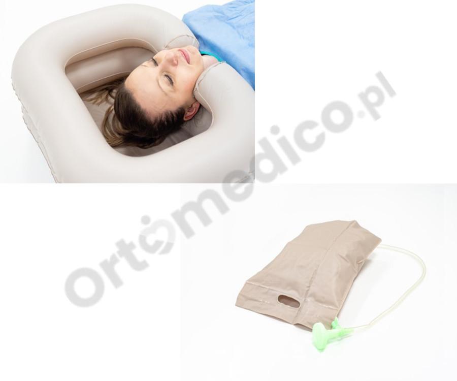 Basen do mycia głowy z prysznicem to urządzenie medyczne, które umożliwia mycie głowy osobom z ograniczoną mobilnością. Składa się on z dwóch głównych części: basenu i prysznica. Temperatura podczas mycia nie powinna przekraczać 50 °C. Sprawdzi się do mycia głowy oraz włosów o różnej długości, dzięki swojej pojemności. Wypełnienie basenu wodą nie zajmuje wiele czasu i nie wymaga użycia siły.