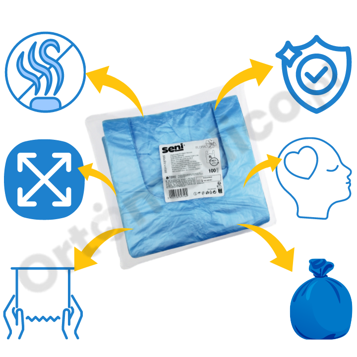 Zadbaj o komfort i higienę dzięki pachnącym woreczkom na zużyte pieluchy Seni. Każdy woreczek jest nasączony specjalnym składnikiem i emitujące przyjemny aromat, skutecznie eliminują niechciane zapachy zużytych produktów  chłonnych i higienicznych. To idealne rozwiązanie dla dorosłych, dzieci oraz osób stosujących worki stomijne, osób stosujących worki na zbiórkę moczu, zapewniające czystość i świeżość każdego dnia.