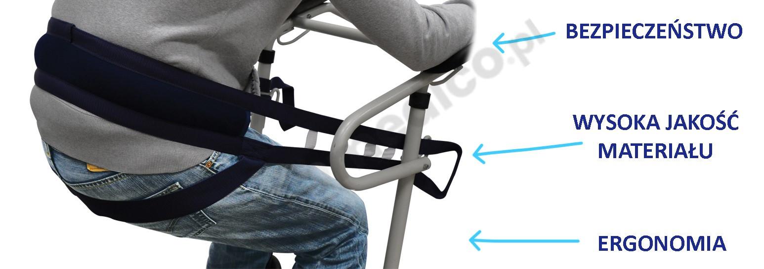 Redukcja wysiłku: Pas stabilizuje pacjenta, dzięki czemu opiekun może skupić się na płynnym i bezpiecznym manewrowaniu platformą.