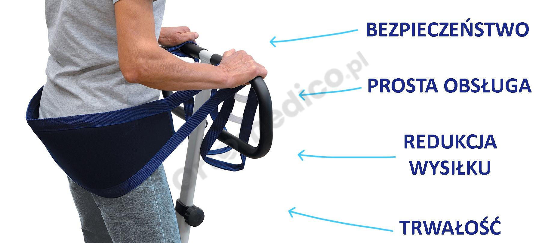 Bezpieczny transfer: Pas asekuracyjny Standard gwarantuje stabilne podparcie pacjenta, minimalizując ryzyko poślizgnięcia czy niekontrolowanego ruchu.