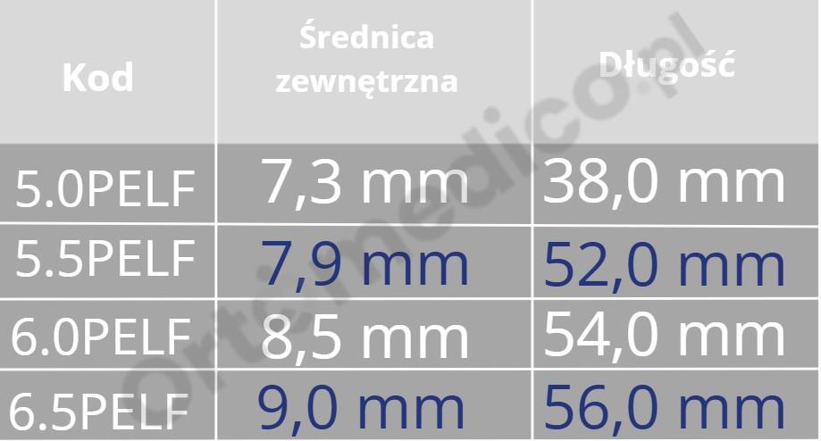 Tabela rozmiarów rurki tracheostomijnej: