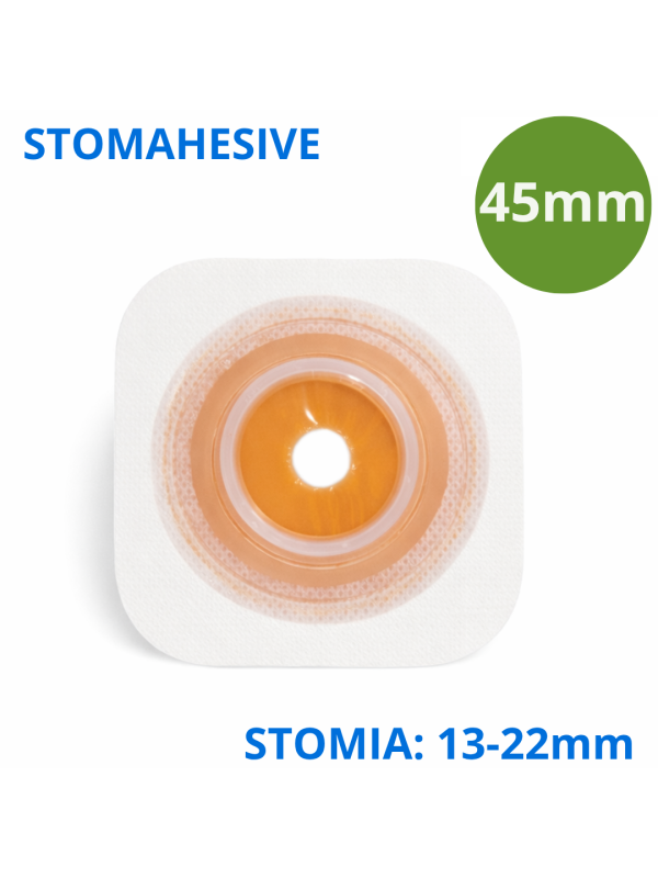 Centralna część płytki wykonana jest z materiału Stomahesive®, który charakteryzuje się wyjątkową delikatnością i skuteczną ochroną.