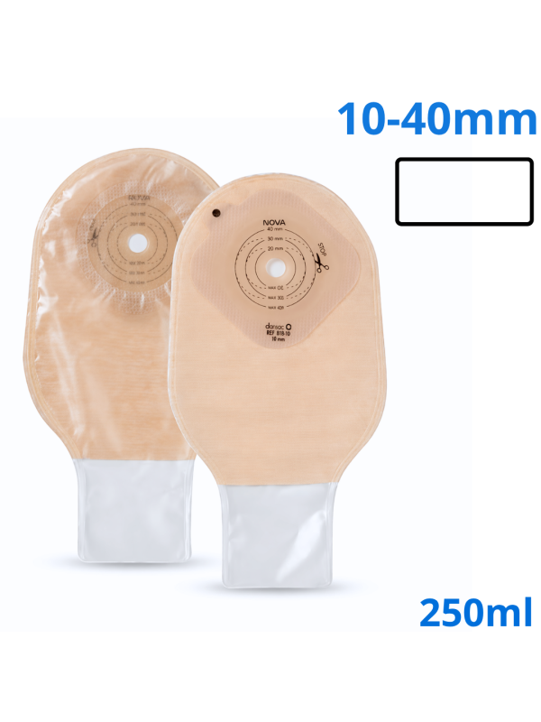 818-10 Worek Stomijny Nova1 Infant Pediatryczny 10-40 mm 250 ml Otwarty Beżowe Dansac