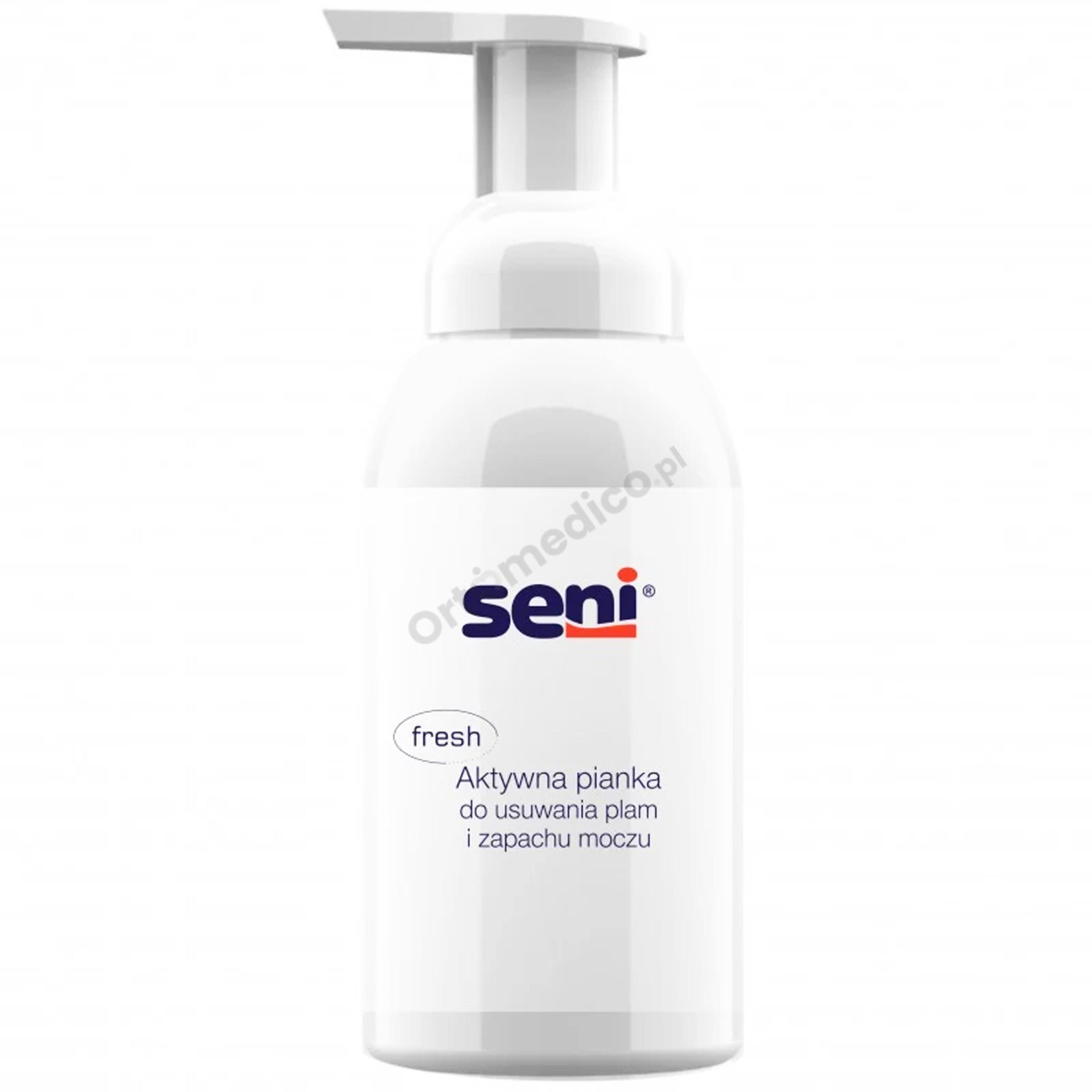 - Pianka Seni Fresh, w połączeniu z neutralizatorem zapachu Seni, tworzy niezawodny zestaw uzupełniający w opiece nad osobami dorosłymi lub dziećmi, które mają problem z nietrzymaniem moczu