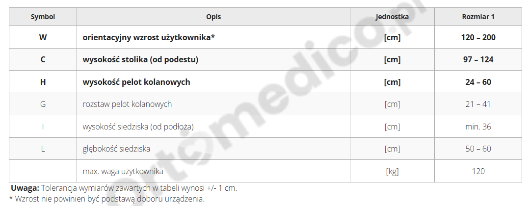 Samodzielność – użytkownik może pionizować się bez pomocy opiekuna.
