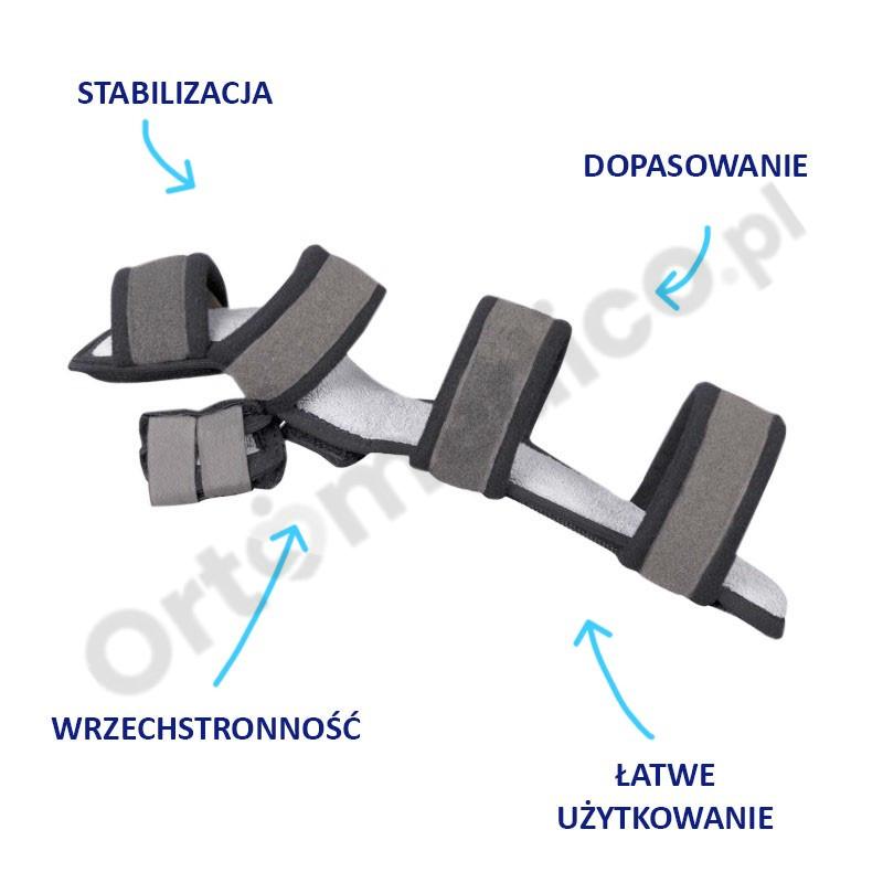 Jest idealna zarówno dla pacjentów ortopedycznych, jak i neurologicznych, przeciwdziałając skutkom wiotkiego lub spastycznego ustawienia ręki neurologicznej. Cztery pasy dociągowe gwarantują anatomiczne dopasowanie do obwodu kończyny, co zapewnia maksymalny komfort użytkowania.