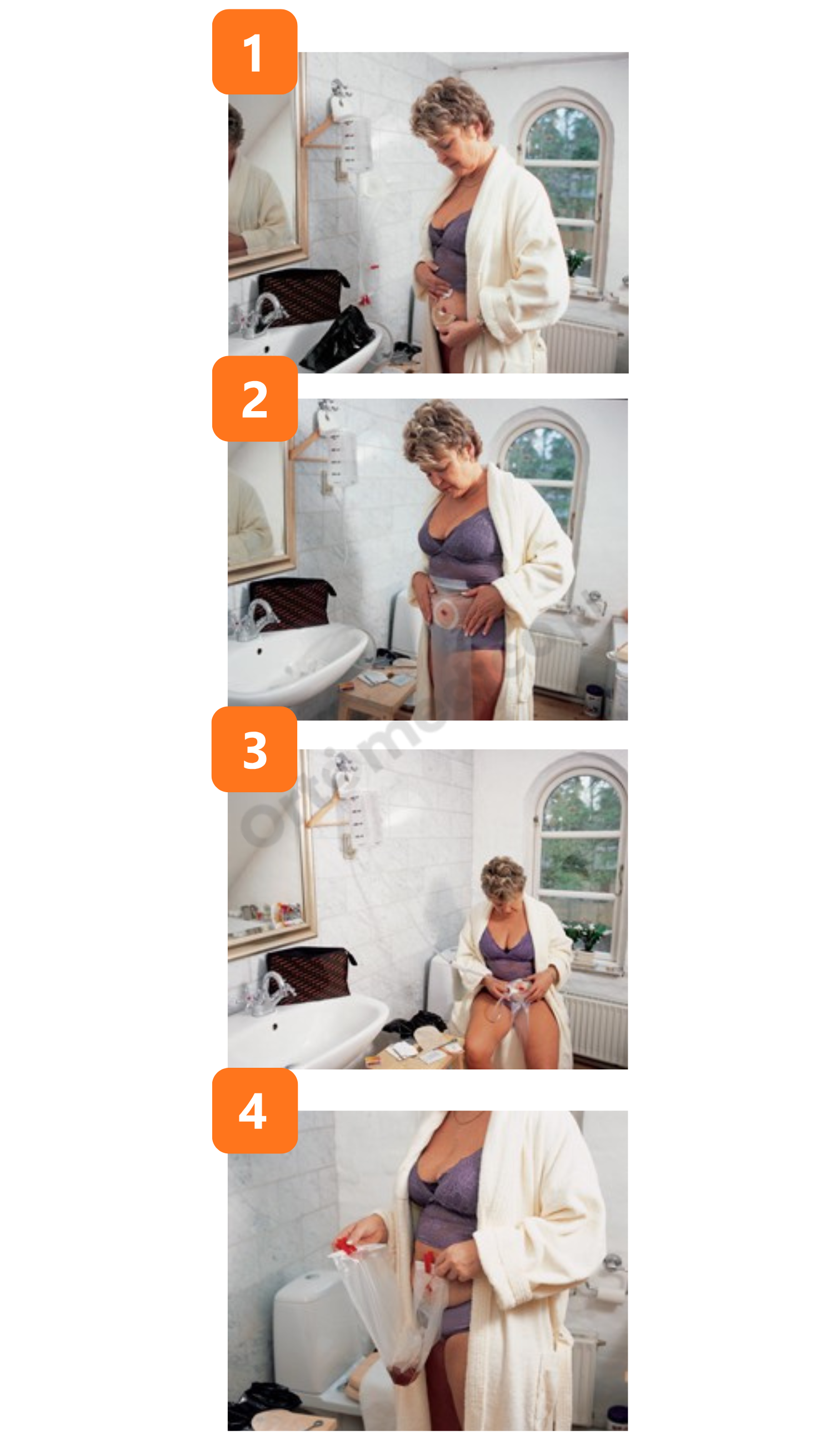 - Załóż nowy worek stomijny lub osłonę stomijną (najczęściej mini worek).
