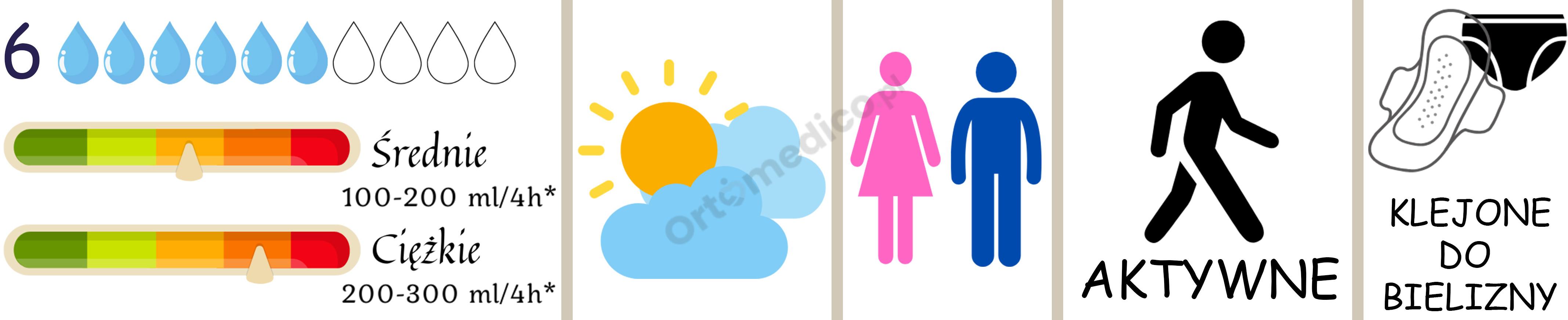 - Uwzględnia się różnicę między produktami dziennymi (krótszy czas noszenia) i nocnymi (wyższa chłonność).