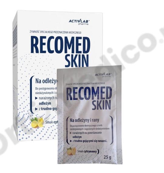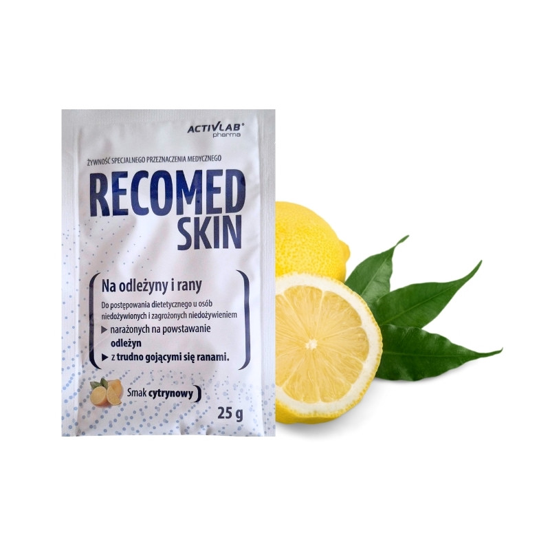 Recomed Skin to wysokobiałkowa żywność specjalnego przeznaczenia medycznego, opracowana z myślą o żywieniowym wsparciu procesu gojenia ran, odleżyn i uszkodzeń skóry. Preparat zawiera starannie dobraną kompozycję peptydów kolagenowych, L-argininy, aminokwasów, witamin oraz składników mineralnych, które odgrywają istotną rolę w regeneracji tkanek i odbudowie skóry.