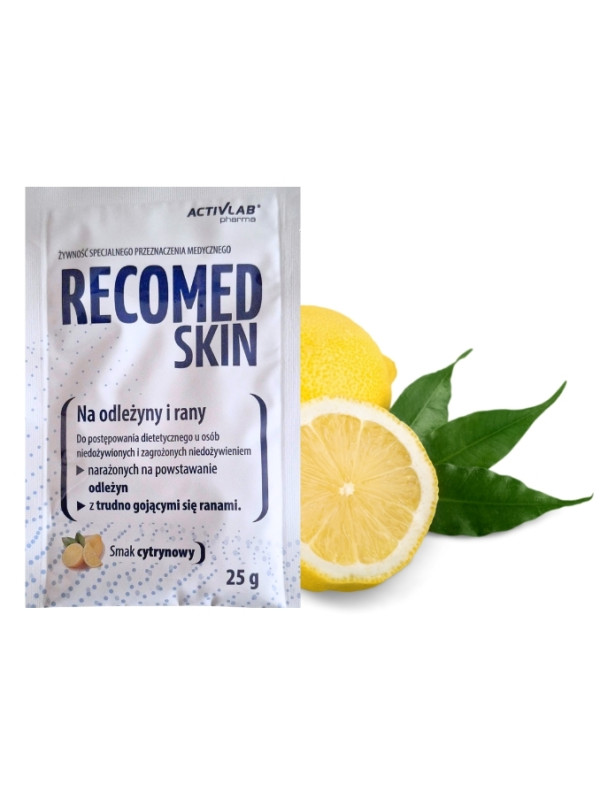 Recomed Skin to wysokobiałkowa żywność specjalnego przeznaczenia medycznego, opracowana z myślą o żywieniowym wsparciu procesu gojenia ran, odleżyn i uszkodzeń skóry. Preparat zawiera starannie dobraną kompozycję peptydów kolagenowych, L-argininy, aminokwasów, witamin oraz składników mineralnych, które odgrywają istotną rolę w regeneracji tkanek i odbudowie skóry.