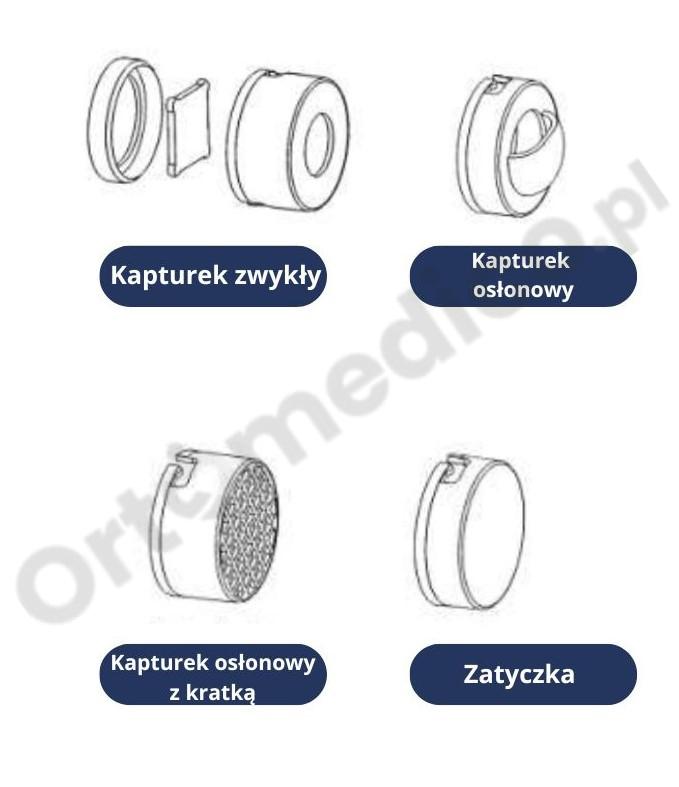 - kapturek osłonowy - zmieniający kierunek wdychanego i wydychanego powietrza;