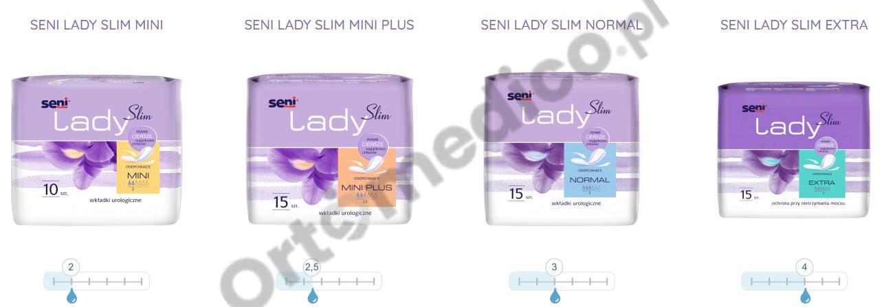 Wkładki urologiczne Seni Lady Slim Mini przeznaczone są dla kobiet z kropelkowym i lekkim stopniem nietrzymania moczu. Przeznaczone dla kobiet prowadzących aktywny tryb życia, mobilnych. Chłonność jaką posiadają te wkładki to 2/6 kropelek i wymiar 9,5 x 22,5 cm.