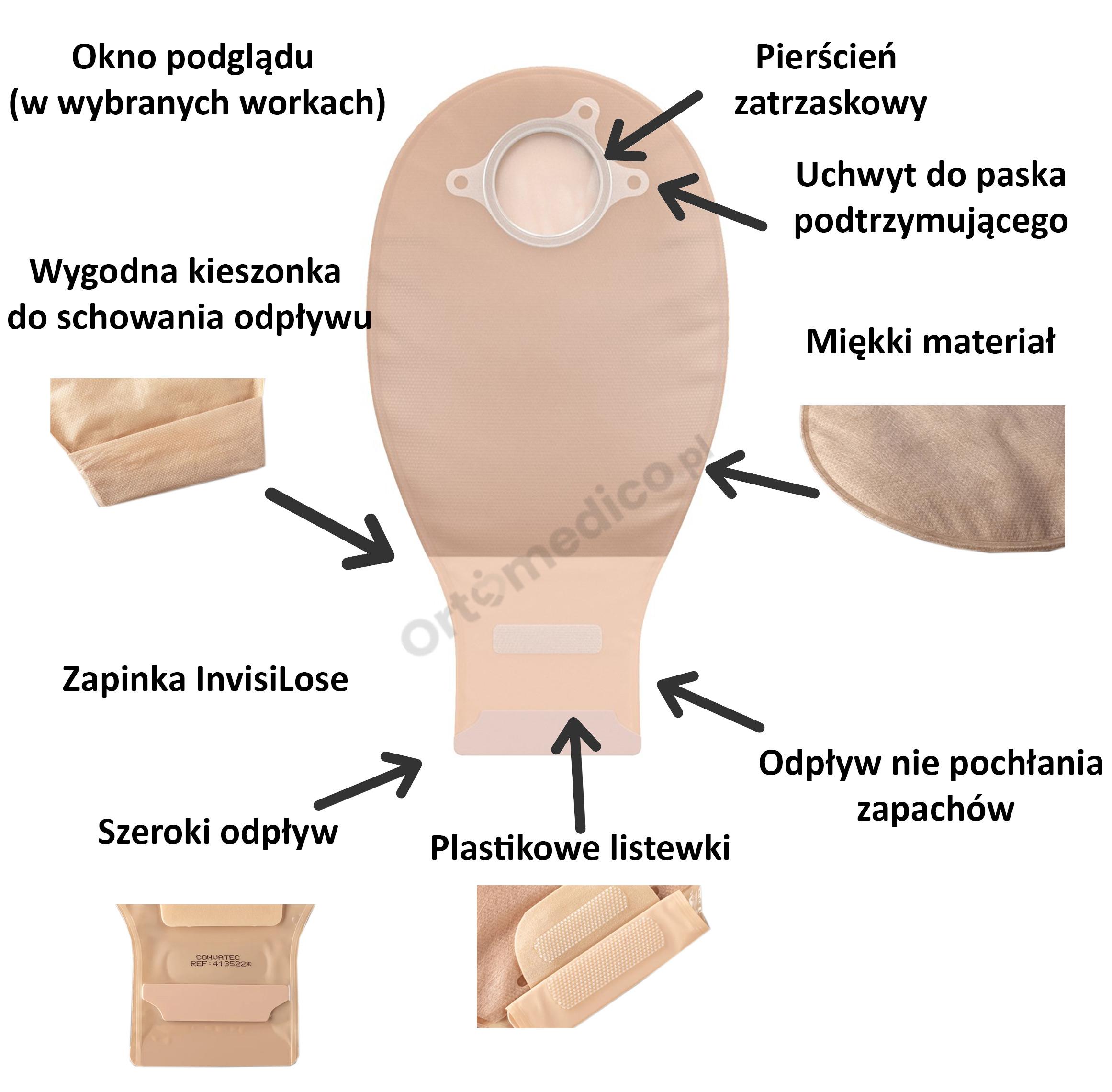 Co ważne dla wielu, najnowszy worek zbudowany jest w trosce o dyskrecje ma wszytą kieszonkę na otwór worka, która jest łatwa w użyciu.