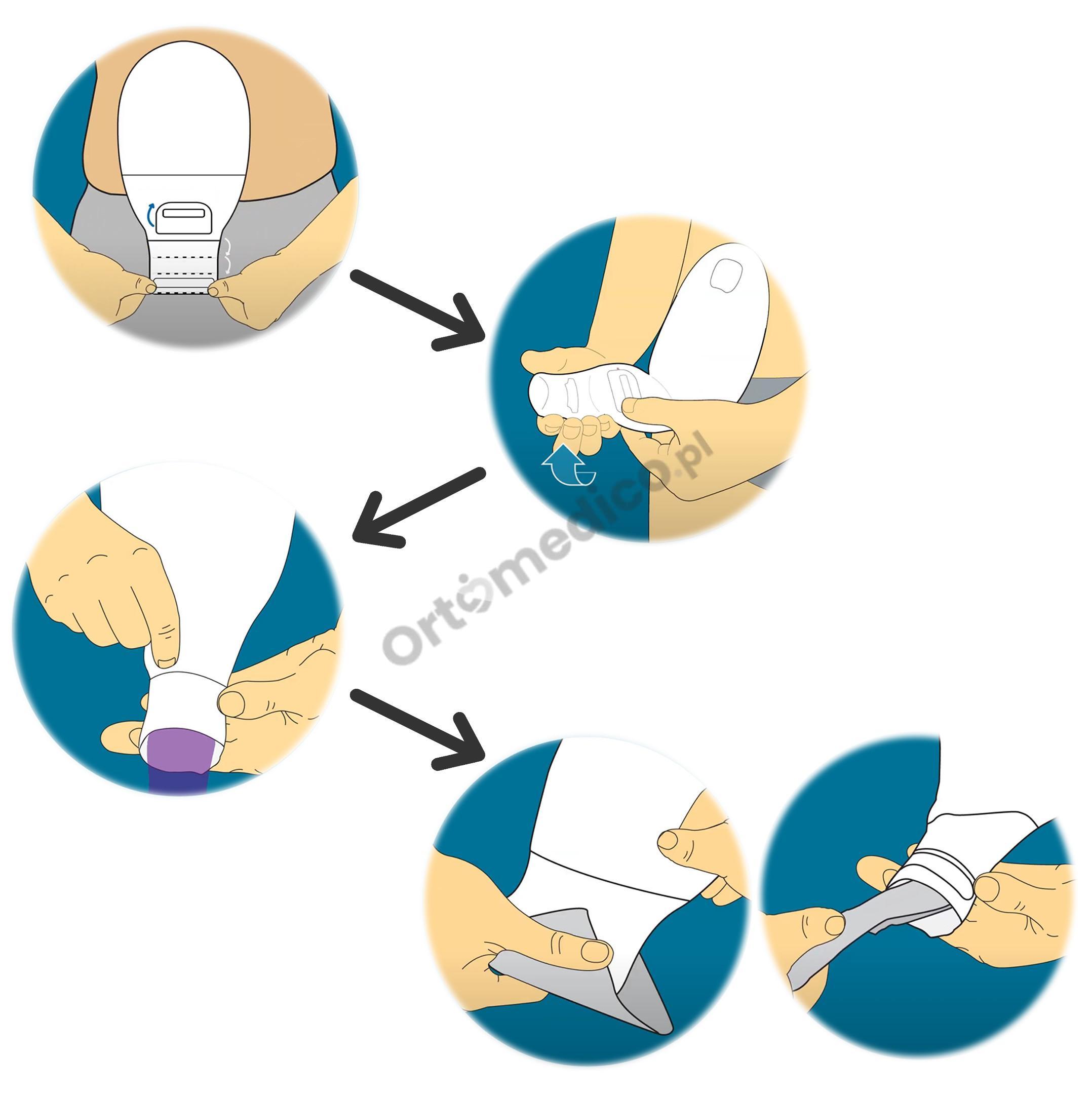 - MOCOWANIE DO PASKA – mocne uchwyty służące przypięciu do paska podtrzymującego worek stomijny