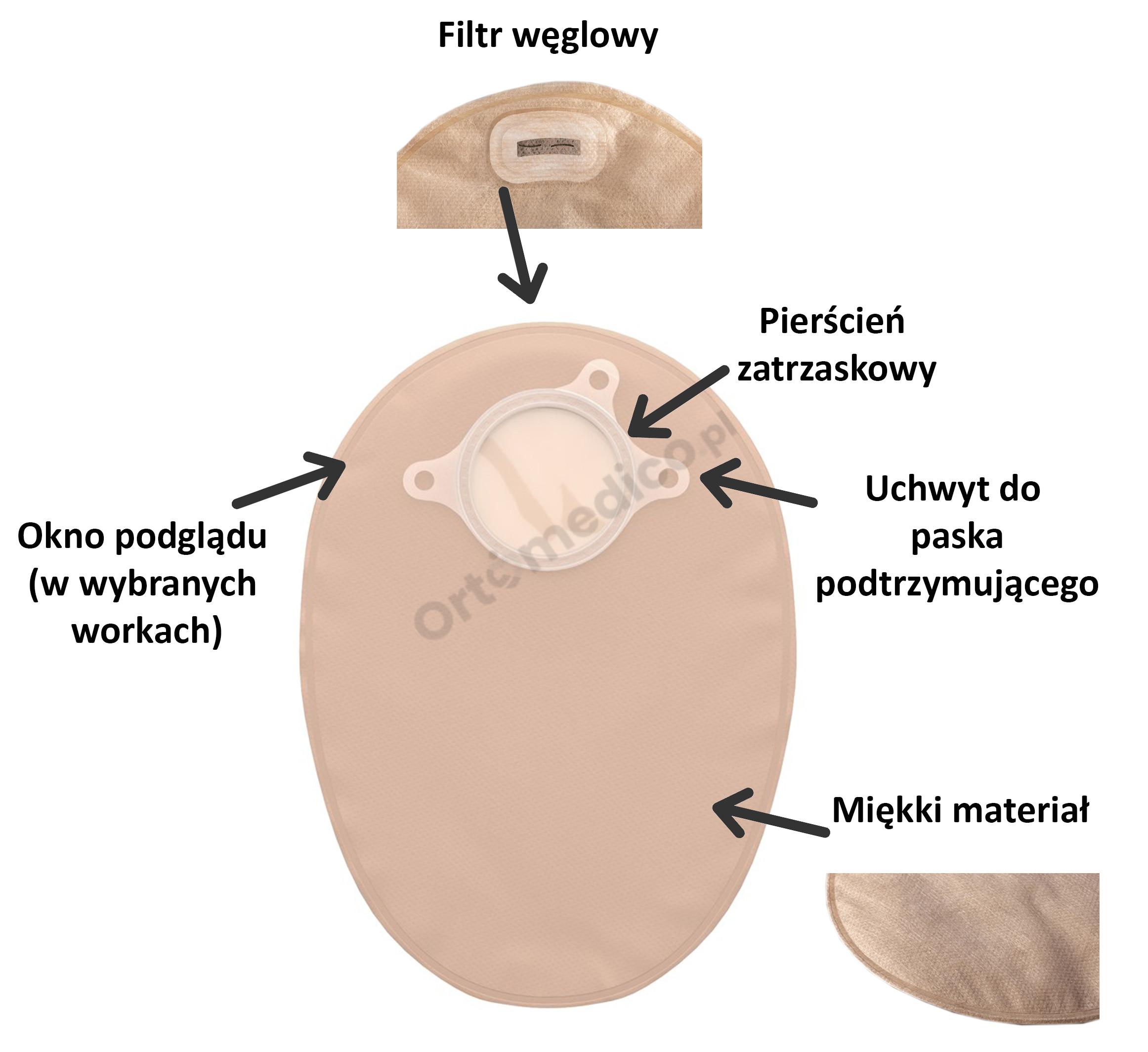 - REDUKCJA ZAPACHU – filtr węglowy neutralizuje nieprzyjemne zapachy treści stomijnej, lepiej odprowadza gazy i zapobiega balonowaniu się worka