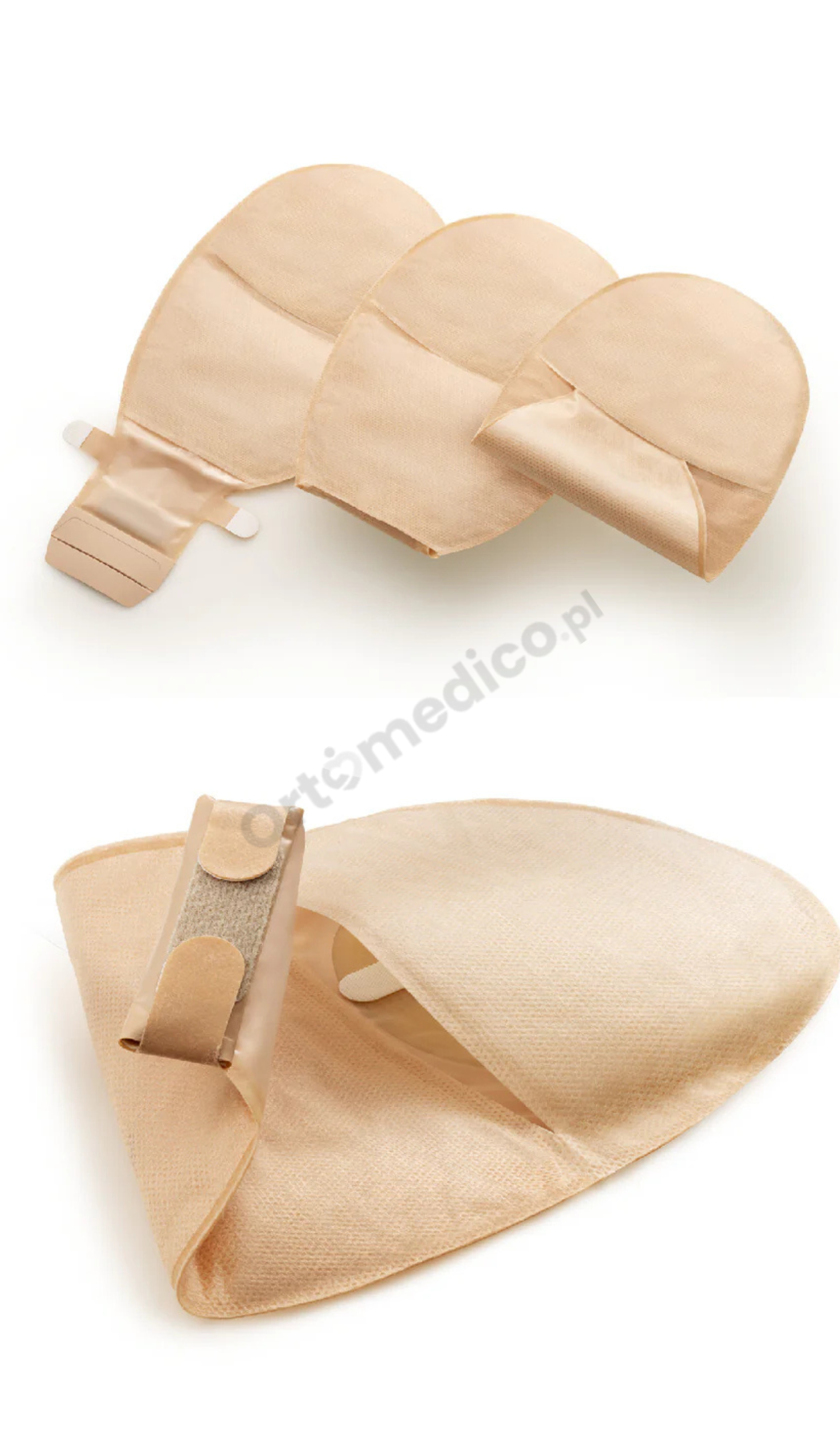 System Hide-away – ujście worka wyposażone jest w zapięcie na rzep®, które można łatwo schować i zabezpieczyć. Dzięki temu opróżnianie jest szybkie i higieniczne, a sam worek po złożeniu jest mniej widoczny pod ubraniem. To rozwiązanie zwiększa poczucie komfortu i dyskrecji w każdej sytuacji.