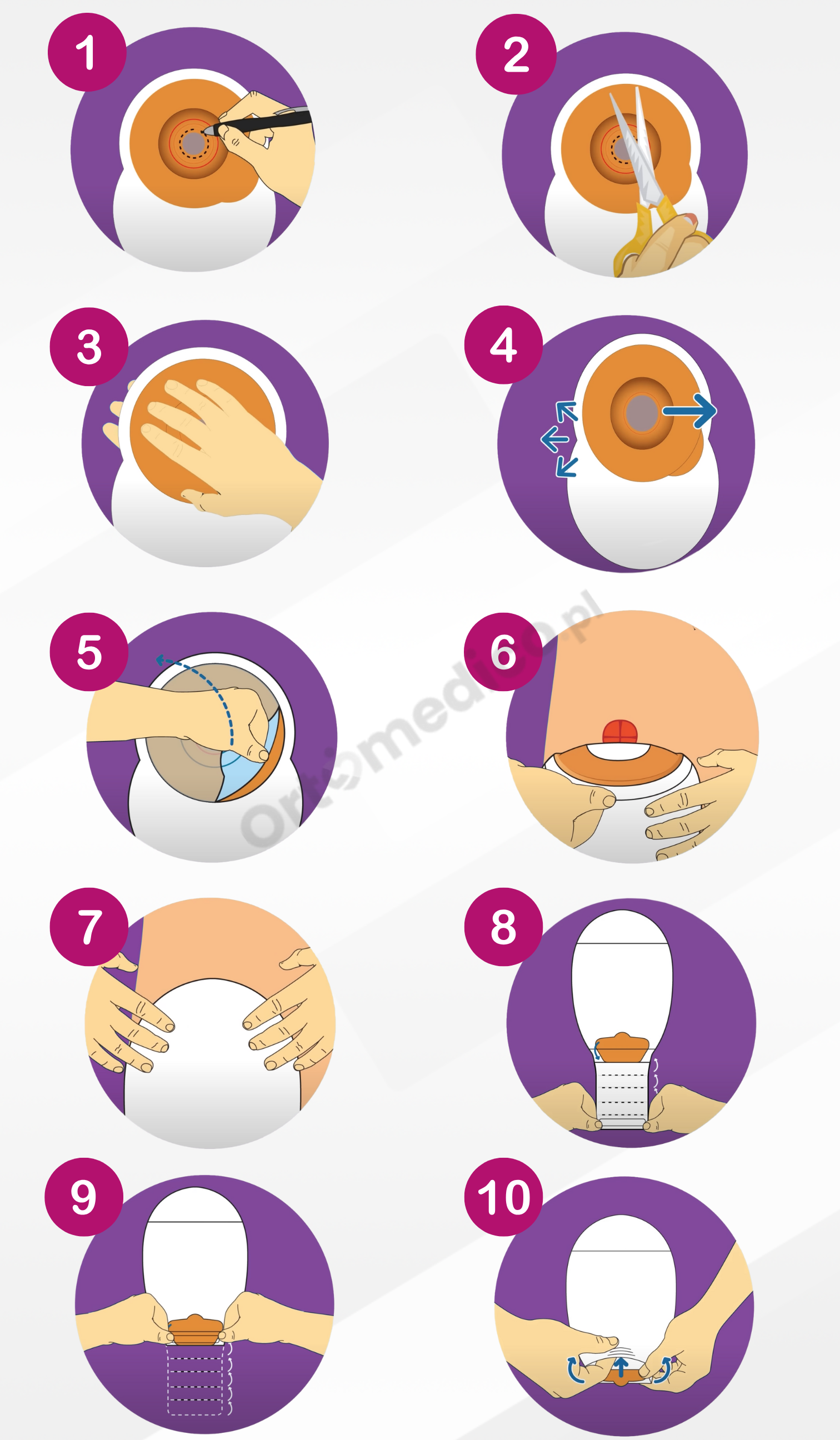 5. Umieść worek tak aby znajdował się poniżej Twojej stomii