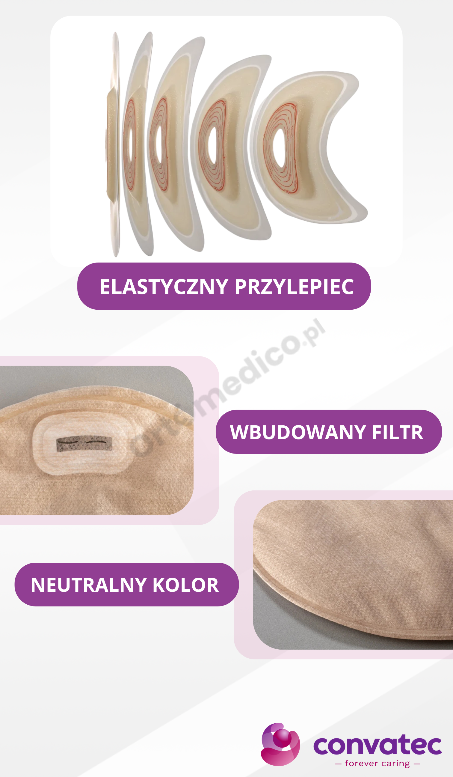 • Pacjenci aktywni, którzy potrzebują elastycznego i dobrze przylegającego sprzętu stomijnego.