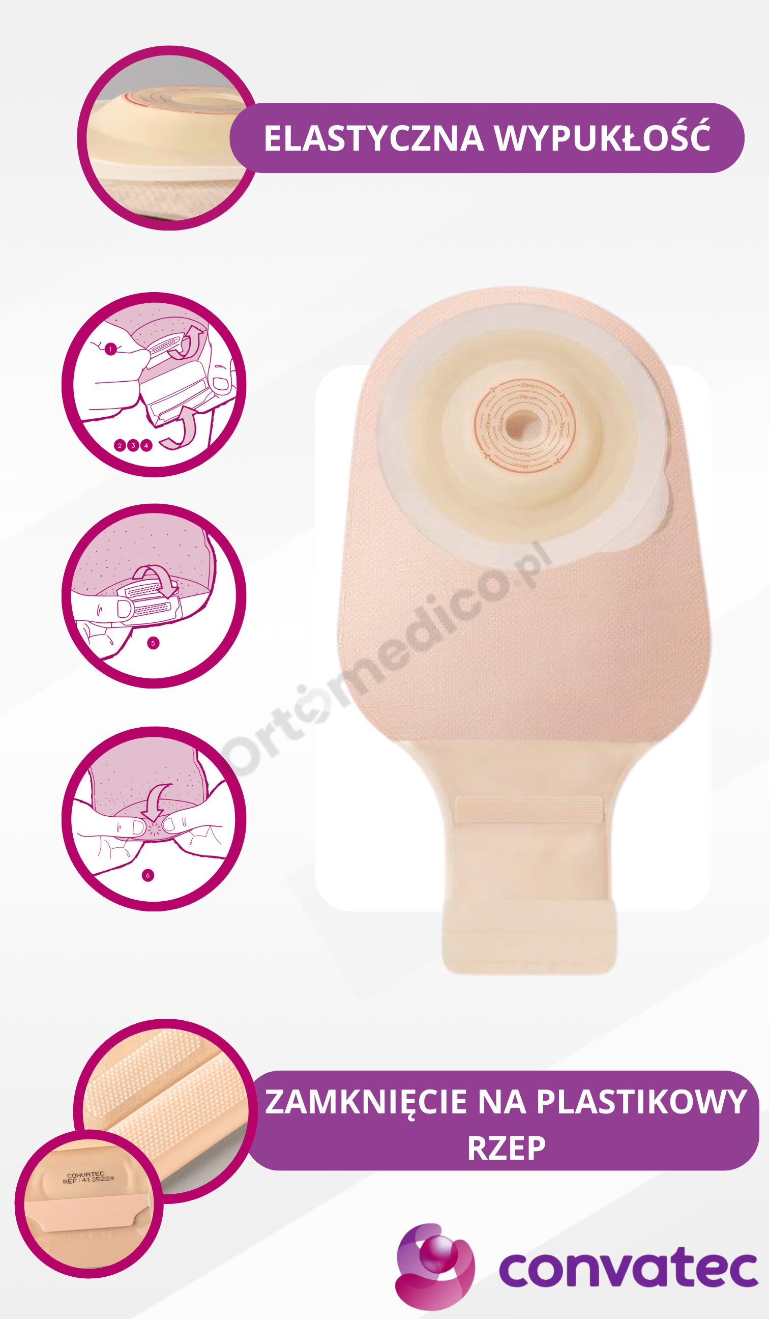 Łatwość użytkowania – szybkie i bezpieczne zamknięcie bez klipsa oraz praktyczne okienko Easy-View ułatwiają codzienną pielęgnację stomii.