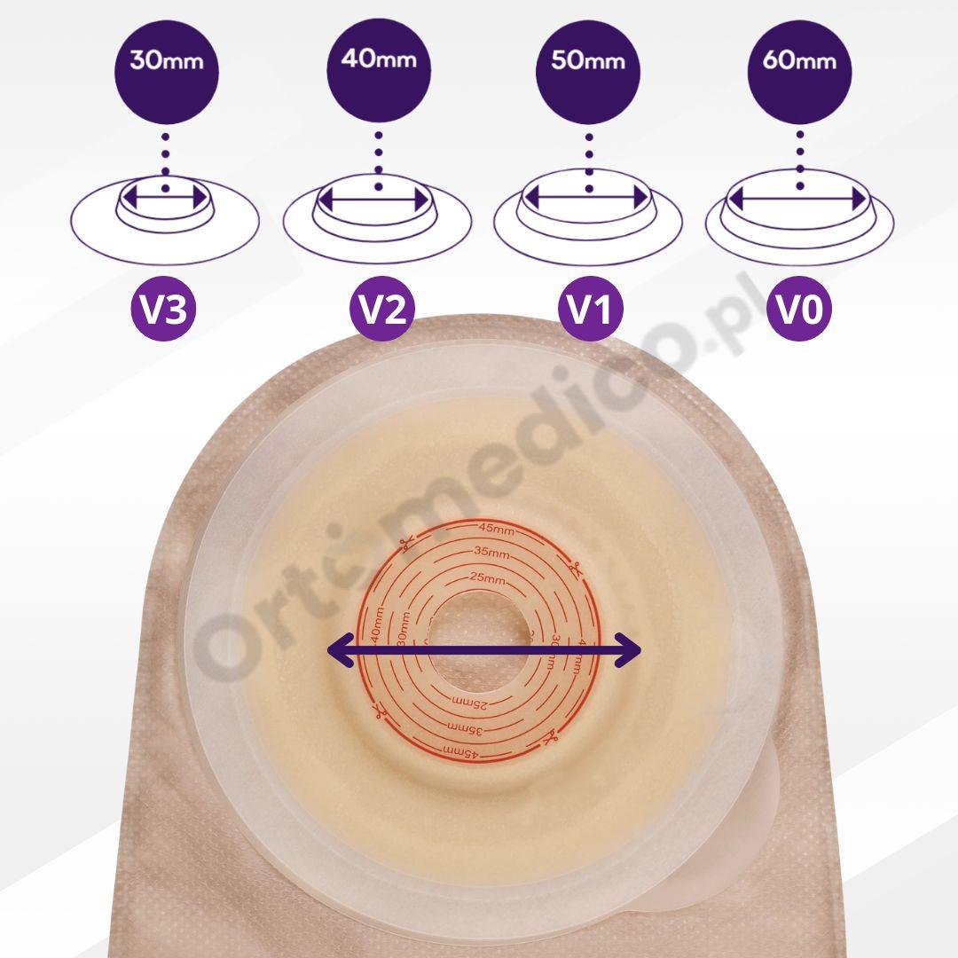 Worek dostępny jest w wersji do docinania (20-47 mm) lub z gotowym otworem, co umożliwia idealne dopasowanie do indywidualnych potrzeb pacjenta.