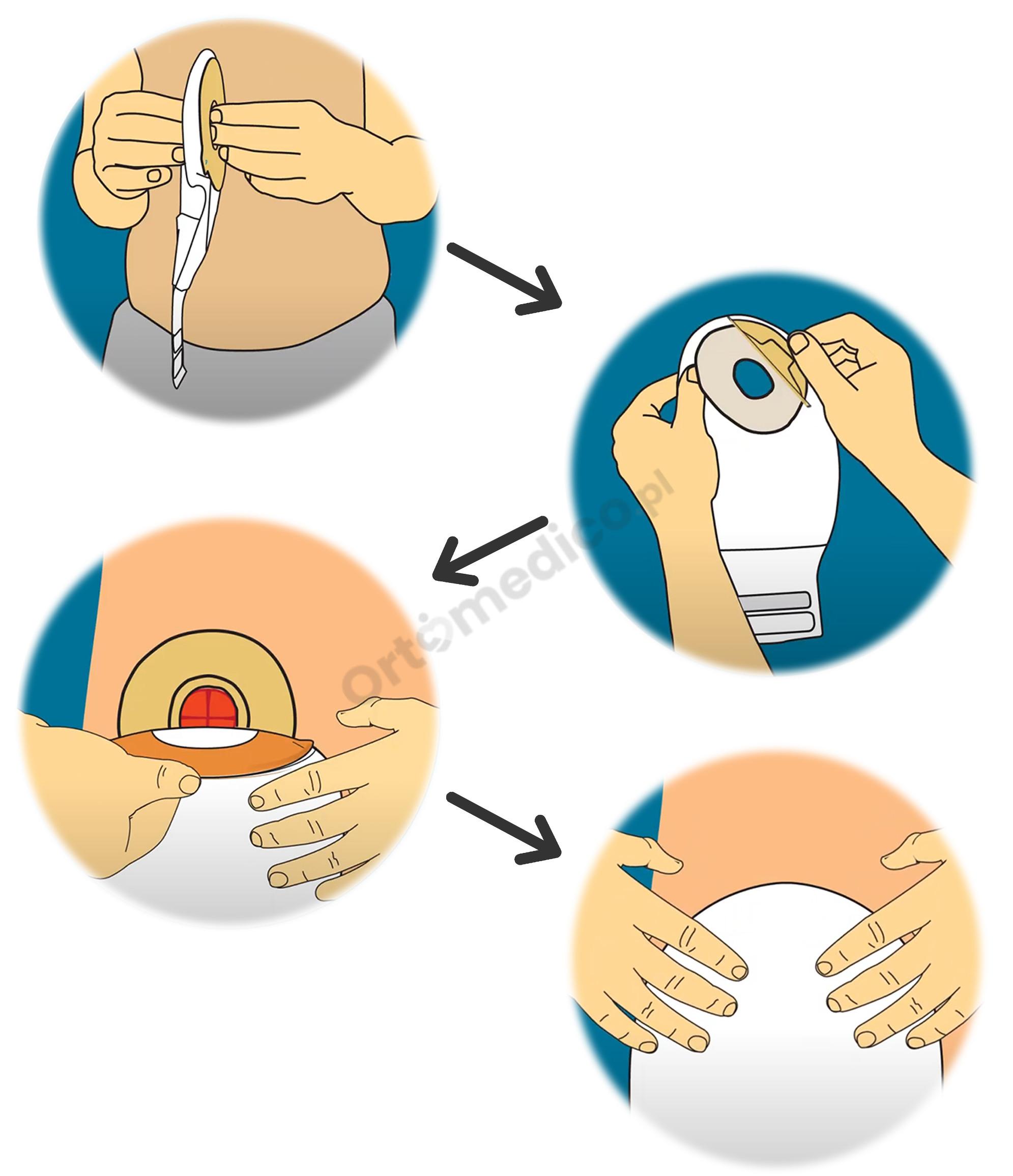 - MOCOWANIE HYDROKOLOIDOWYM WYPUKŁYM PRZYLEPCEM DO STOMII – mocowanie przylepca do skóry stomii miękkim materiałem