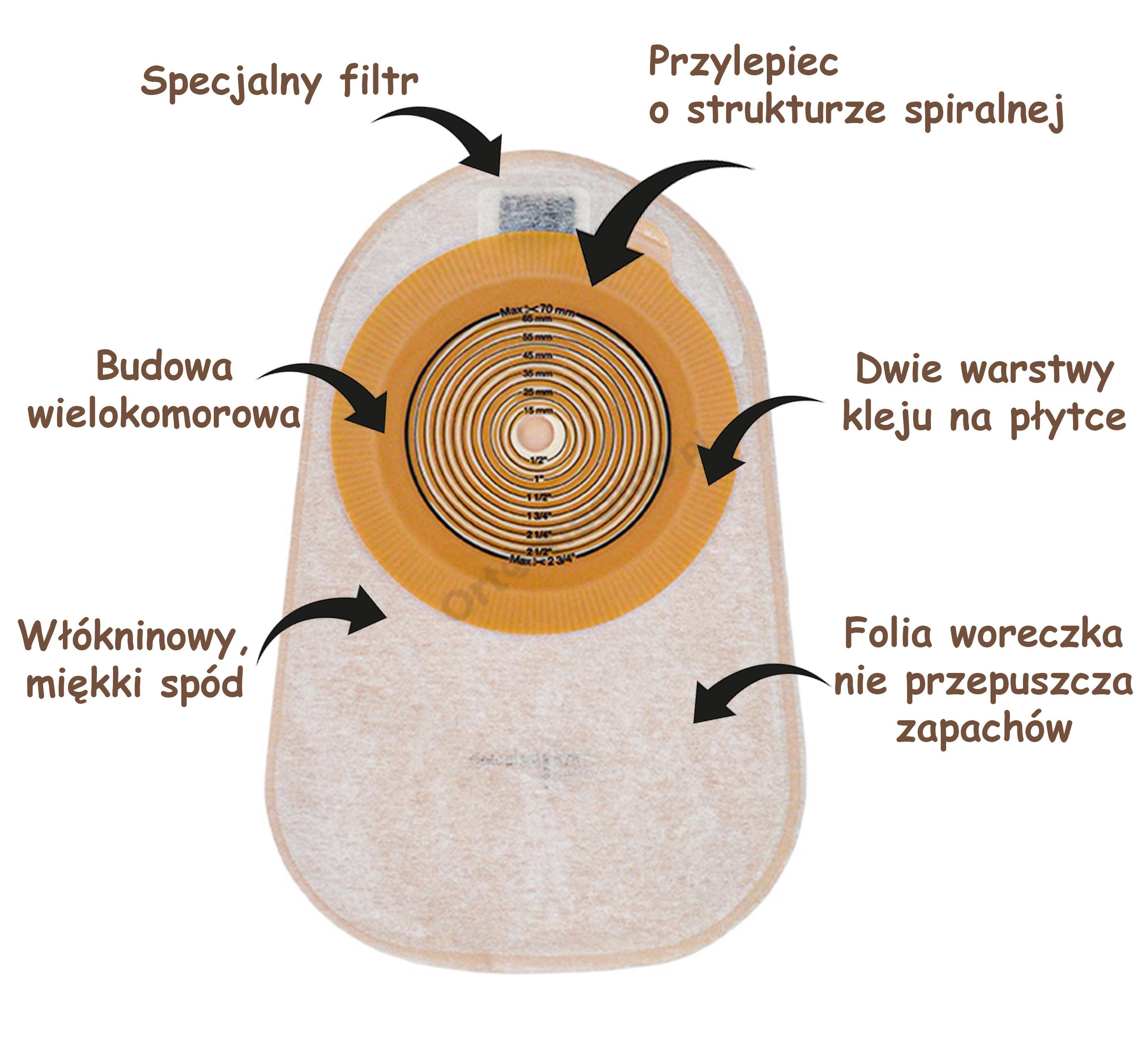 • Optymalna Elastyczność: System 1-częściowy zapewnia optymalną elastyczność, co jest istotne dla osób z nierównościami skóry wokół stomii.