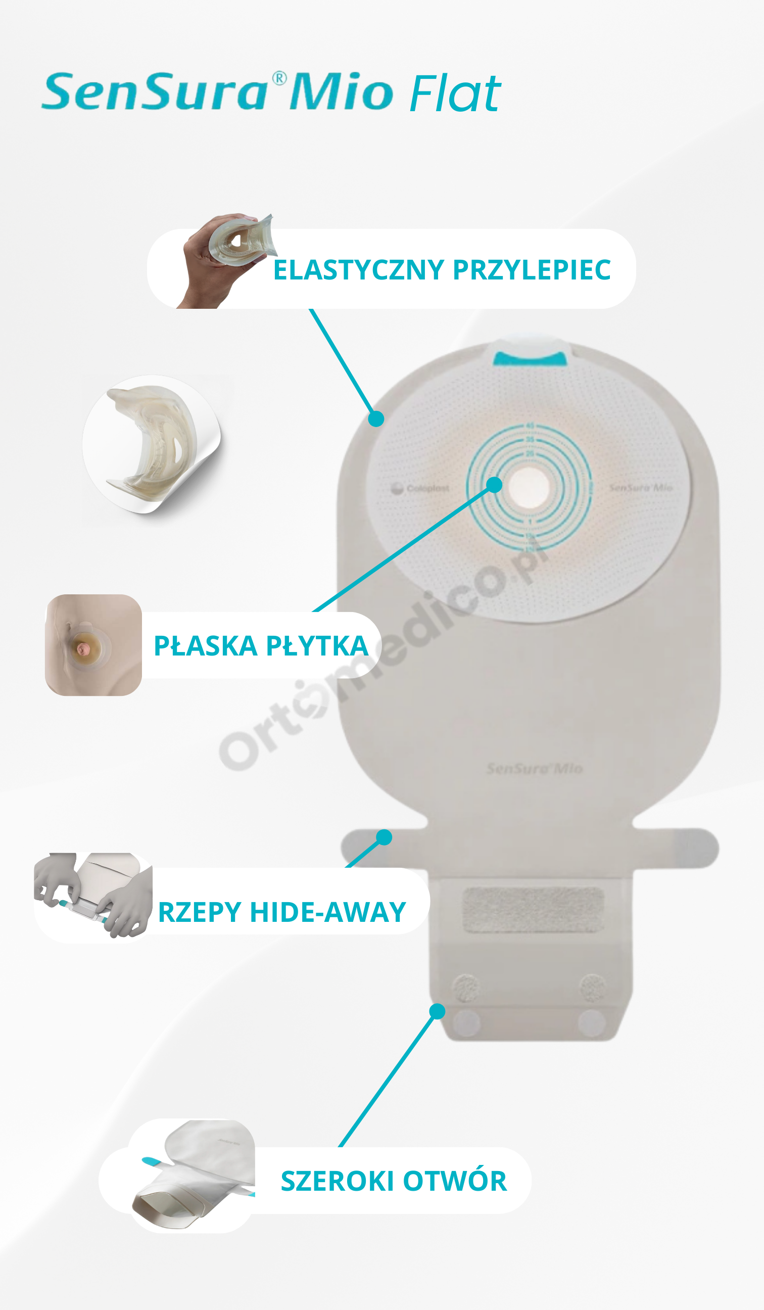 Wersja przezroczysta umożliwia pełną kontrolę zawartości, co jest szczególnie ważne w okresie nauki życia ze stomią oraz dla osób pod opieką pielęgniarską lub rodzinną. Dzięki transparentności łatwiej jest ocenić prawidłowe umiejscowienie przylepca, a także monitorować wygląd i funkcjonowanie stomii.
