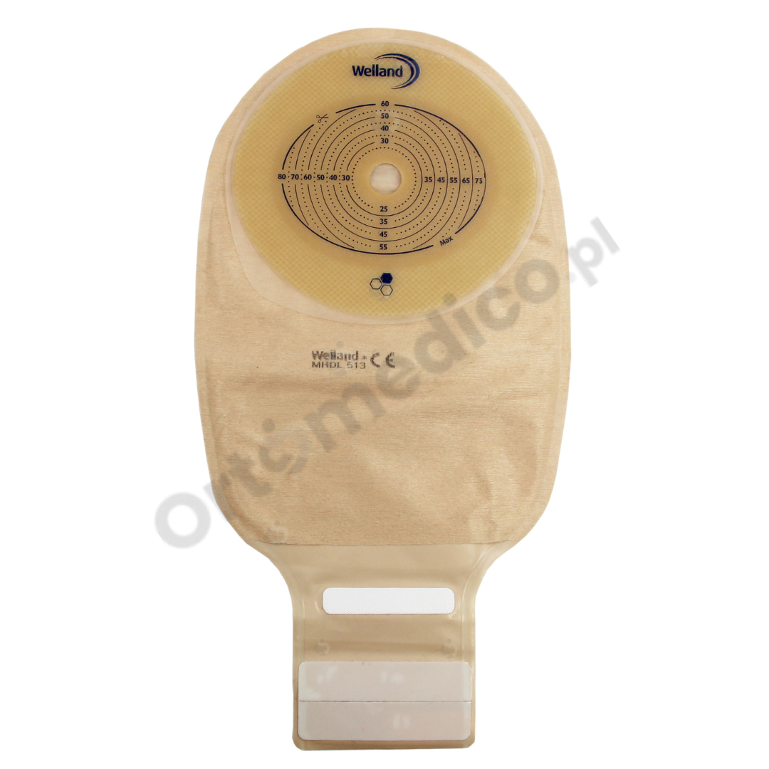 XMHDL513 Worek Jednoczęściowy Aurum Drainable 13/60-80mm Maxi Welland Z Miodem Manuka Beż z Okienkiem Otwarty
