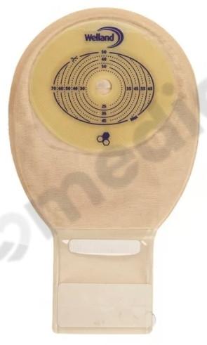 - Otwór (Odpływ): Worek posiada otwór służący do opróżniania go z treści jelitowej, bez konieczności odklejania worka od skóry. To ułatwia higieniczne i skuteczne zarządzanie treścią stomijną.