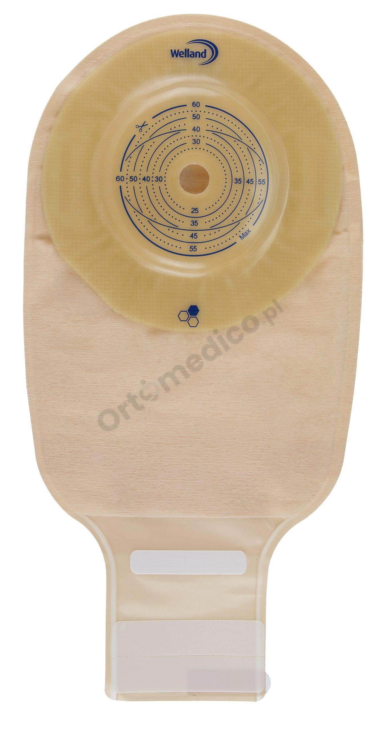 - Hydrokoloidy Hyperflex®: Baza przylepna worka, wykonana z przyjaznych dla skóry hydrokoloidów Welland Hyperflex®, zapewnia mocne i bezpieczne przyleganie do skóry wokół stomii.