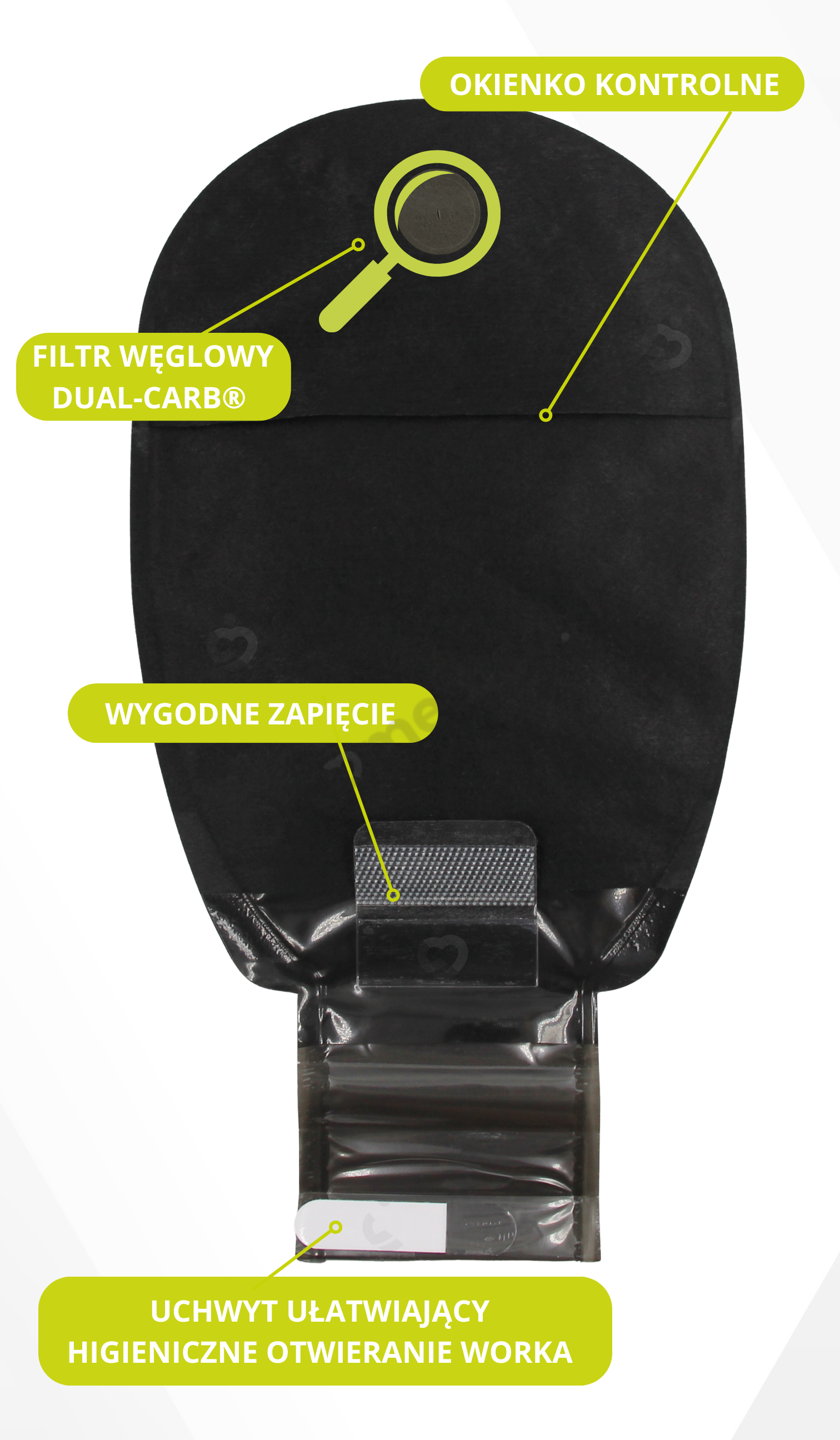 • pacjentów z aktywnym trybem życia, poszukujących worka wygodnego i dyskretnego,
