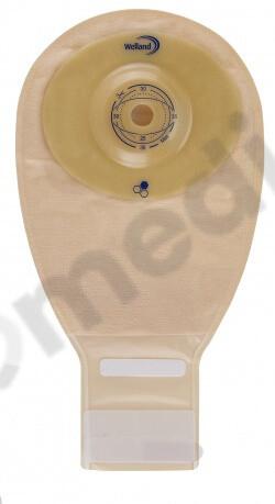 - Hydrokoloidy Hyperflex®: Baza przylepna worka, wykonana z przyjaznych dla skóry hydrokoloidów Welland Hyperflex®, zapewnia mocne i bezpieczne przyleganie do skóry wokół stomii.