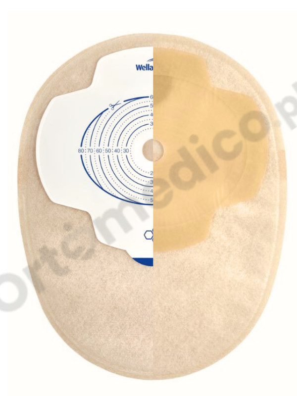 Welland Aurum® Plus Closed X1C1A23S to zaawansowany worek stomijny jednoczęściowy zamknięty w rozmiarze Maxi, przeznaczony dla osób z kolostomią i uformowaną treścią kałową. System łączy innowacyjną technologię hydrokoloidu Hyperflex® z dodatkiem certyfikowanego miodu Manuka oraz specjalnie zaprojektowaną płytką w kształcie „Plus”, zapewniając wysoki poziom szczelności, komfortu i ochrony skóry.