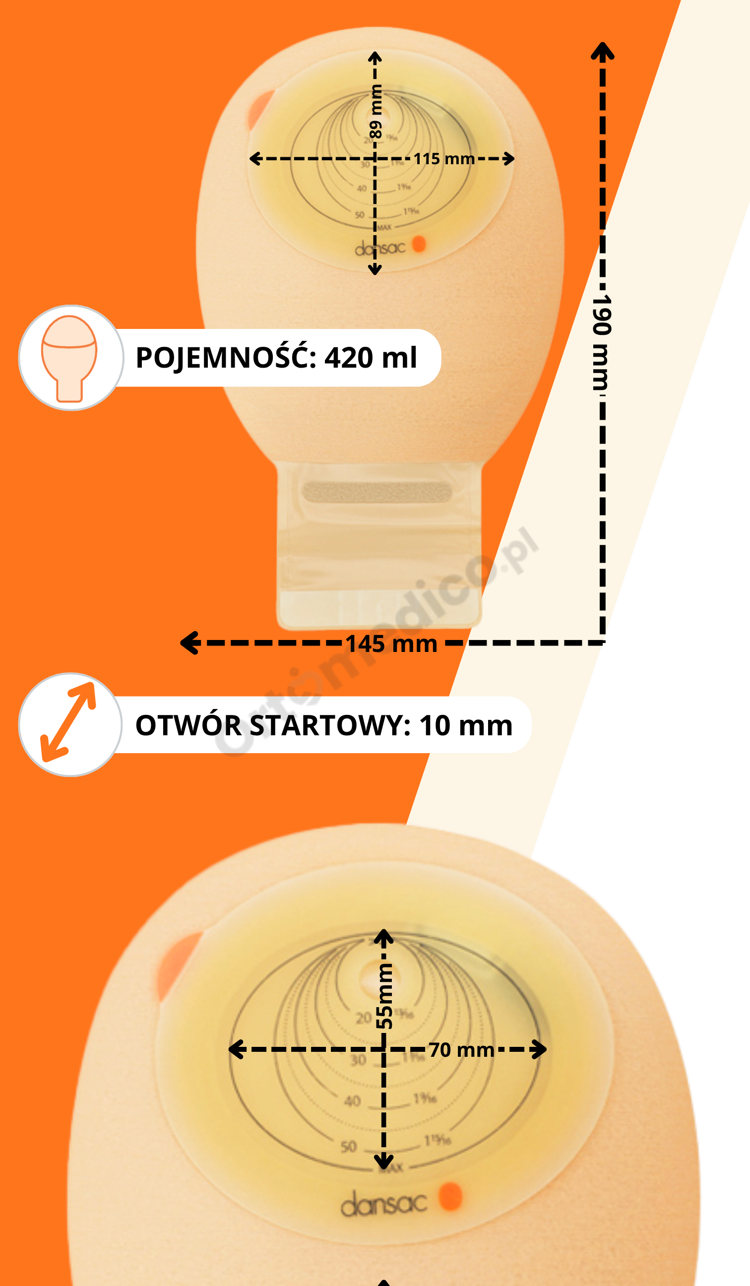 Wymiary 9232-10 worka stomijnego 9232-10 NovaLife1 Midi: